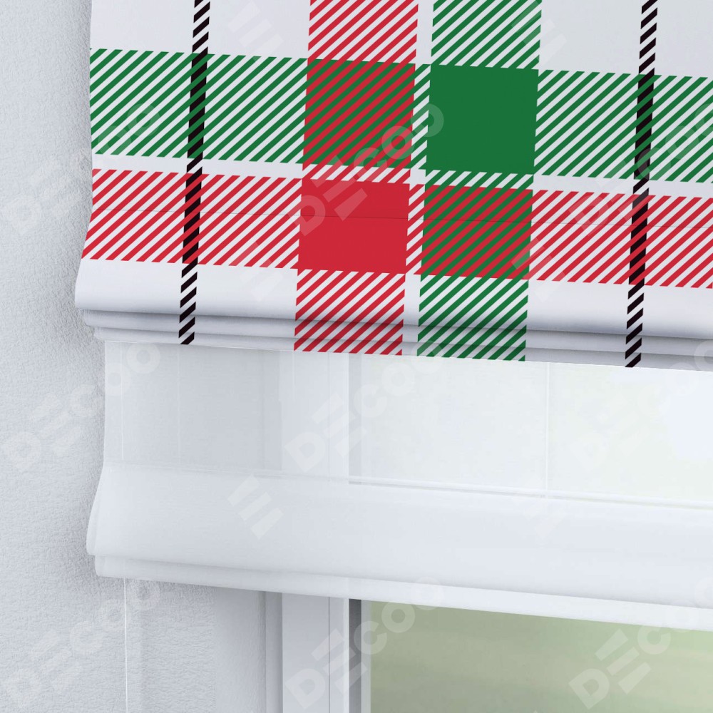 Римская штора день-ночь производителя «Cortin», используется для проёма, пошита из двух полотен, с лицевой блэкаут с нанесением сублимационной печати «Трёхцветная клетка», вторая ткань тюль (по стандарту комплектуется тюль белого цвета артикул V-01). Имеет универсальный механизм и подходит для монтажа: на потолок, на стену и в нишу.