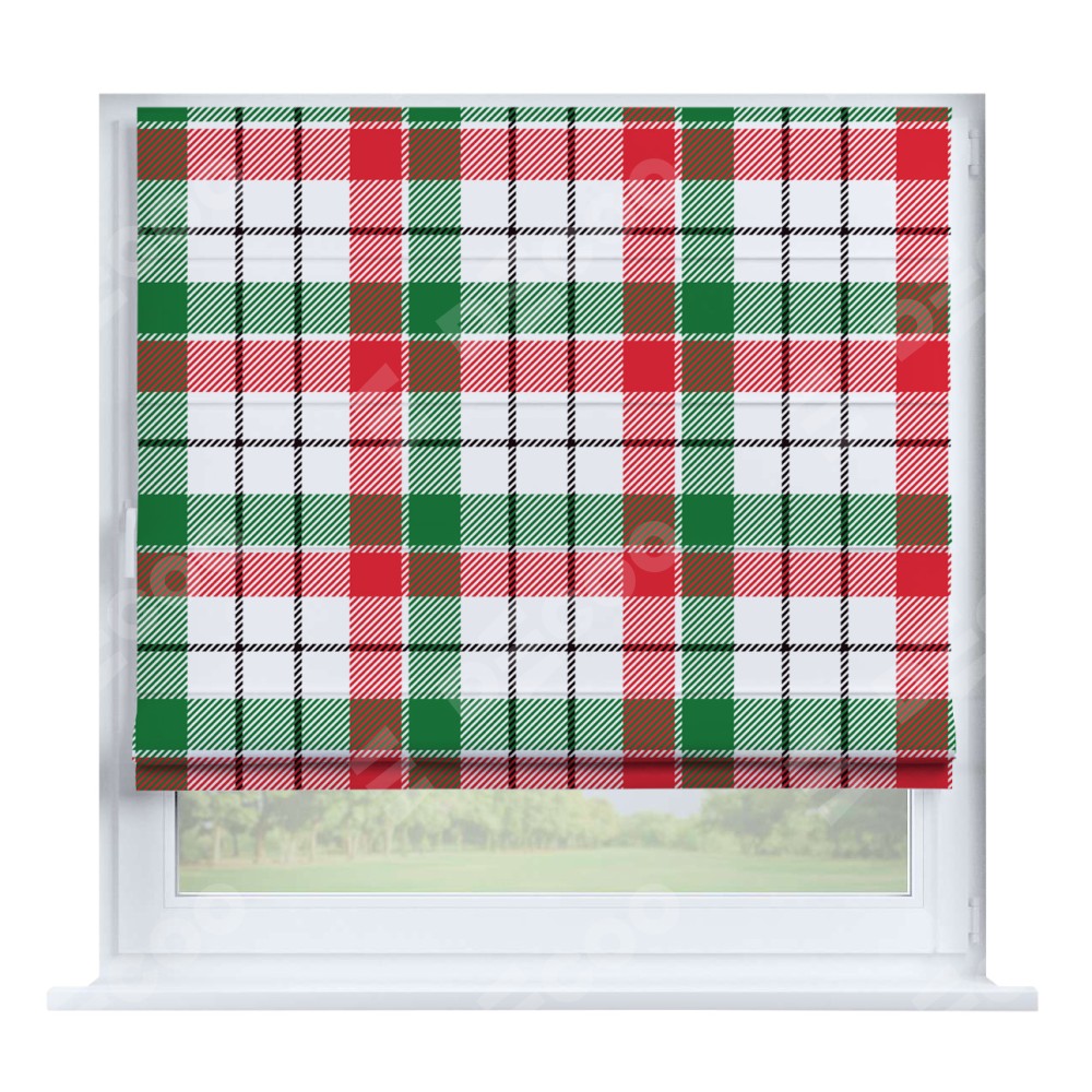 Римская штора производителя «Cortin», устанавливается на створку окна, пошита из ткани блэкаут с нанесением сублимационной печати «Трёхцветная клетка». Штора шьётся по индивидуальным размерам, для данного типа римской шторы возможная ширина от 35 до 150 см., высота до 250 см.