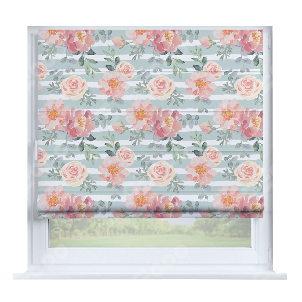 Римская штора производителя «Cortin», устанавливается на створку окна, пошита из ткани блэкаут с нанесением сублимационной печати «Розы акварель». Штора шьётся по индивидуальным размерам, для данного типа римской шторы возможная ширина от 35 до 150 см., высота до 250 см.