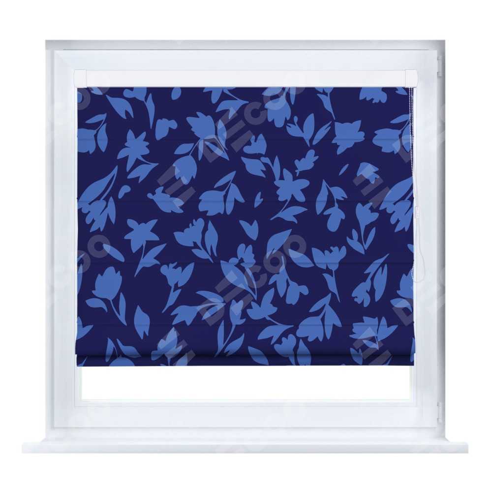 Римская штора производителя «Cortin», устанавливается на створку окна, пошита из ткани блэкаут с нанесением сублимационной печати «Синие цветы». Штора шьётся по индивидуальным размерам, для данного типа римской шторы возможная ширина от 35 до 150 см., высота до 250 см.