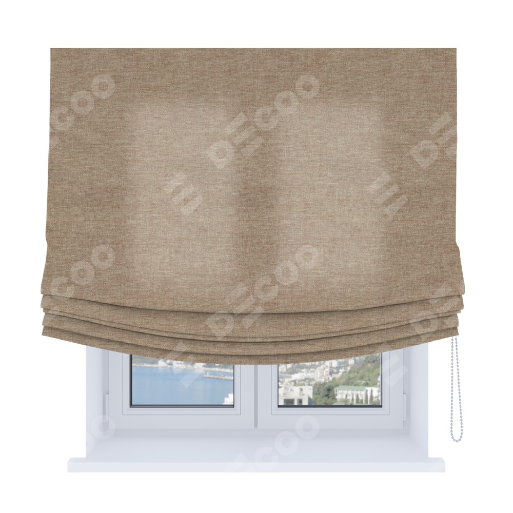 Римская штора Soft производителя «Cortin», используется для проёма, пошита из ткани лён кашемир коричневый, артикул ткани 21614. Имеет универсальный механизм и подходит для монтажа: на потолок, на стену и в нишу. В отличие от стандартных римских штор, римская штора Soft не имеет горизонтальных вставок и нижнего отвеса. Это позволяет ткани произвольно драпироваться в свободные мягкие складки.