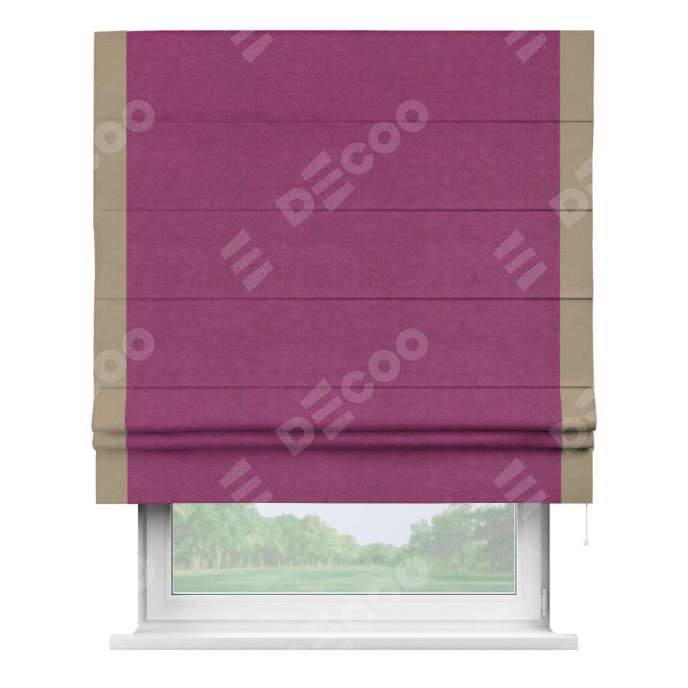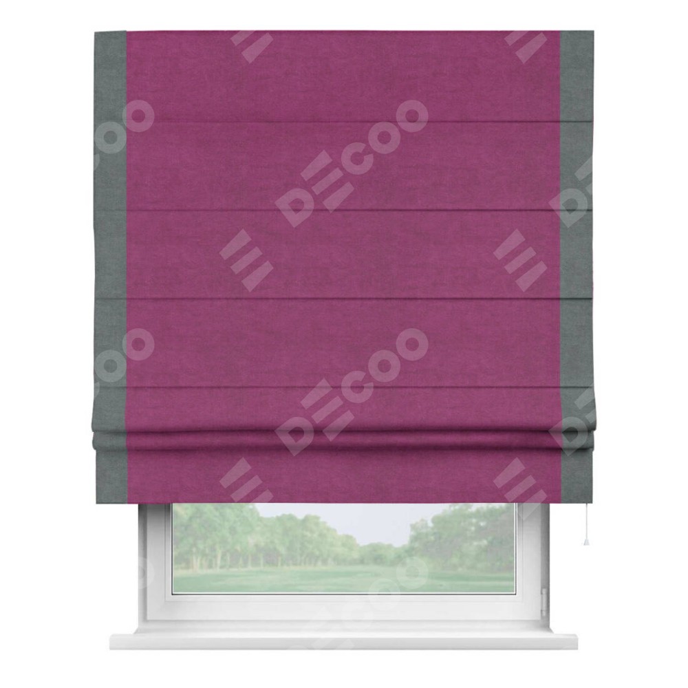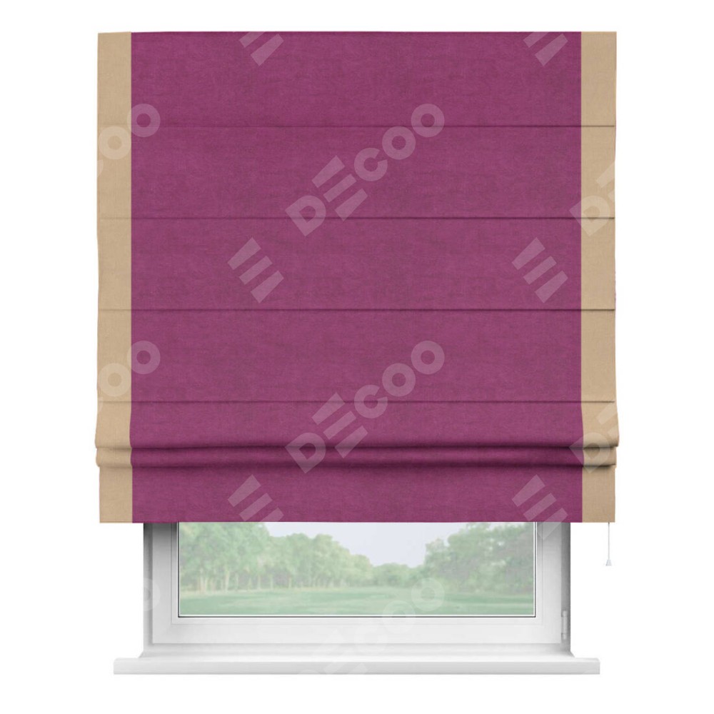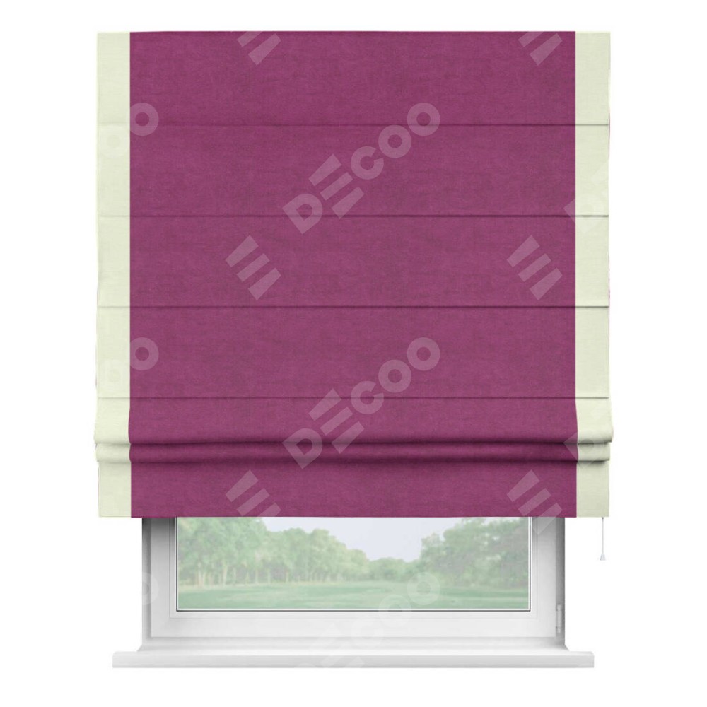 Римская штора «Кортин» с кантом Стрим Дуо, для проема, ткань вельвет фиолетовый