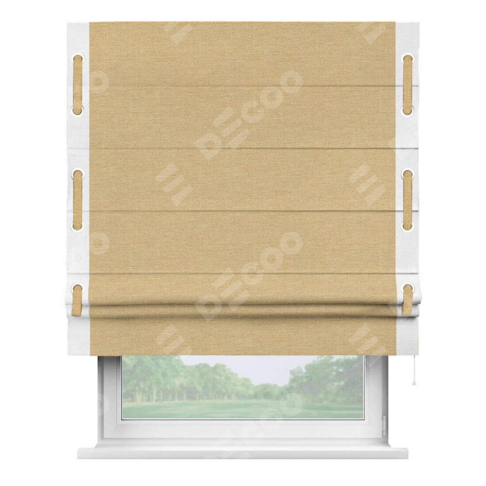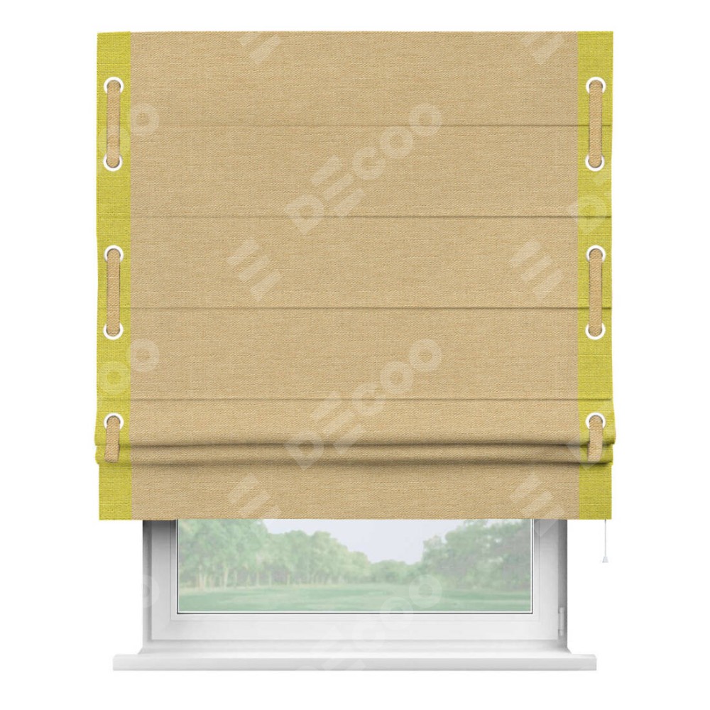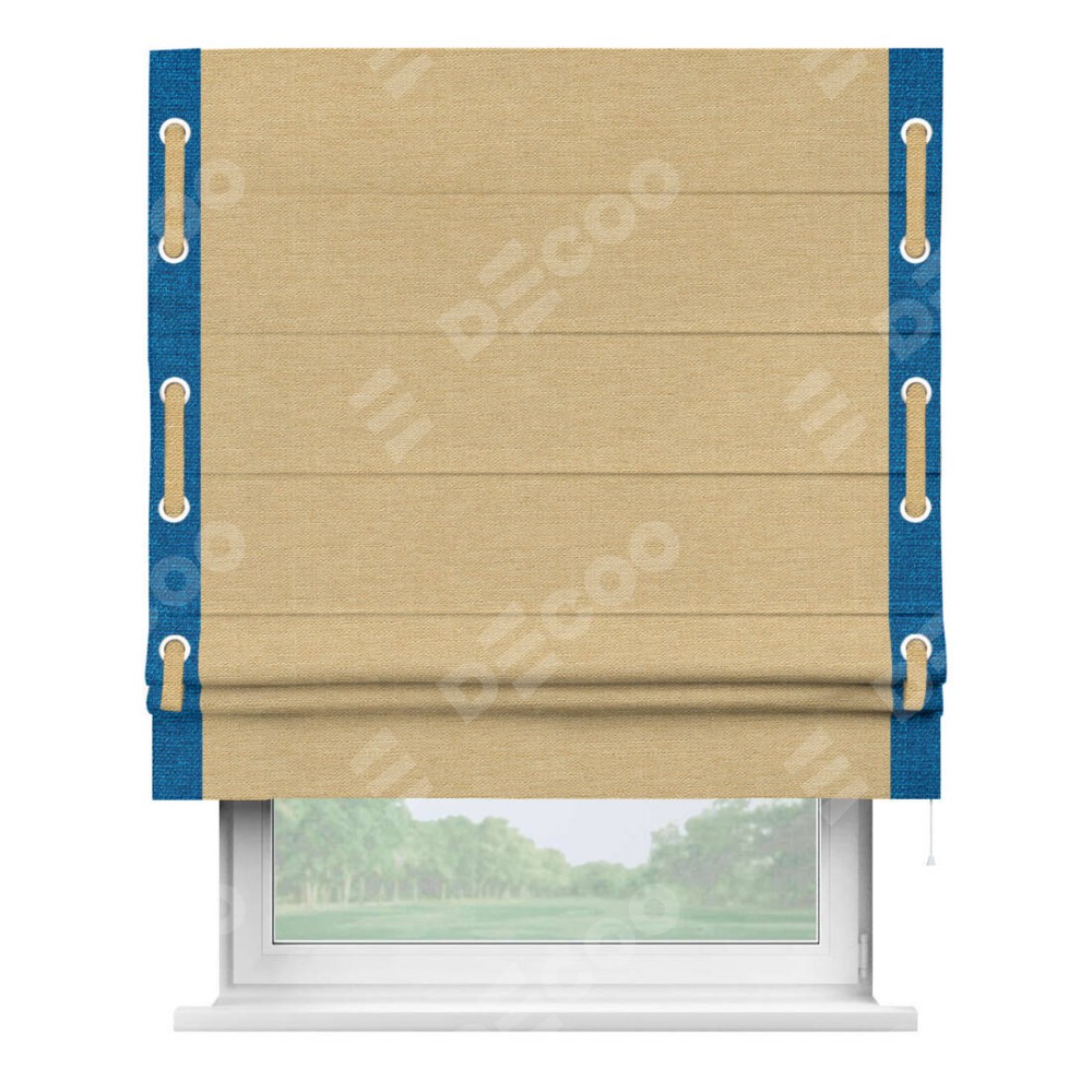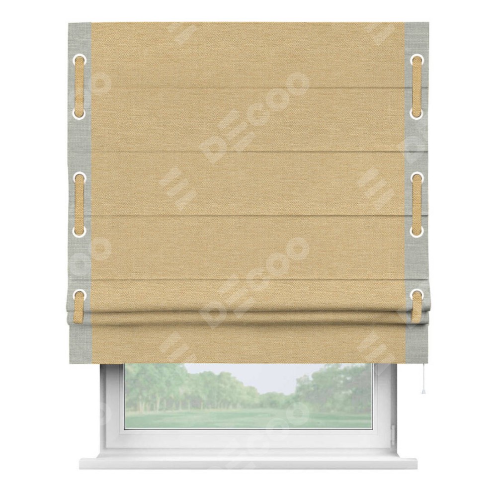 Римская штора «Кортин» с кантом Стрим Дуо (люверсы с пояском), для проема, ткань лён темно-бежевый