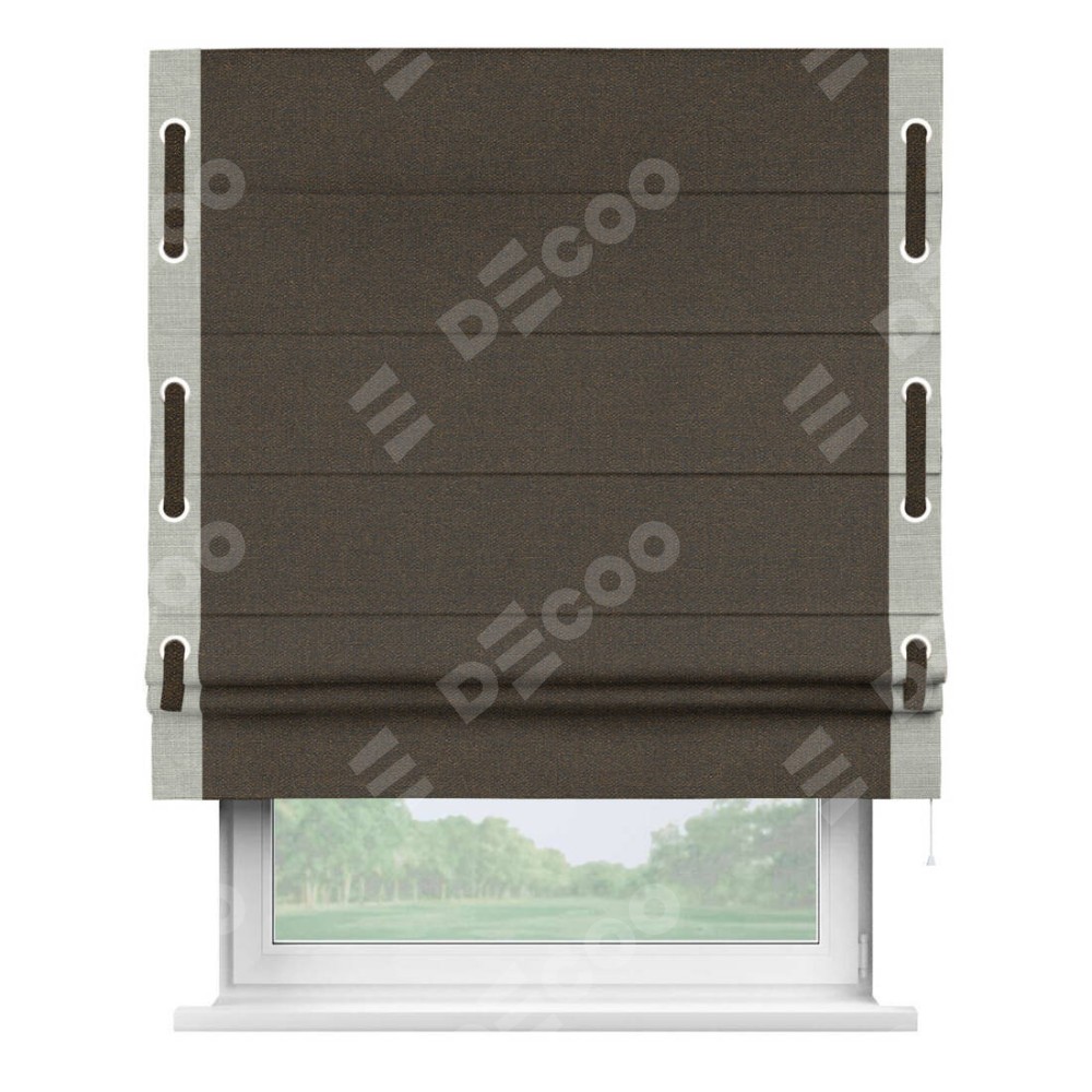 Римская штора «Кортин» с кантом Стрим Дуо (люверсы с пояском), для проема, ткань лён темно-коричневый