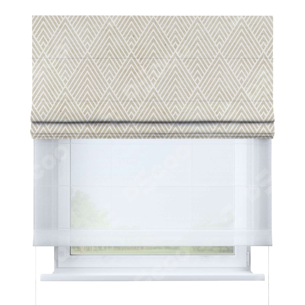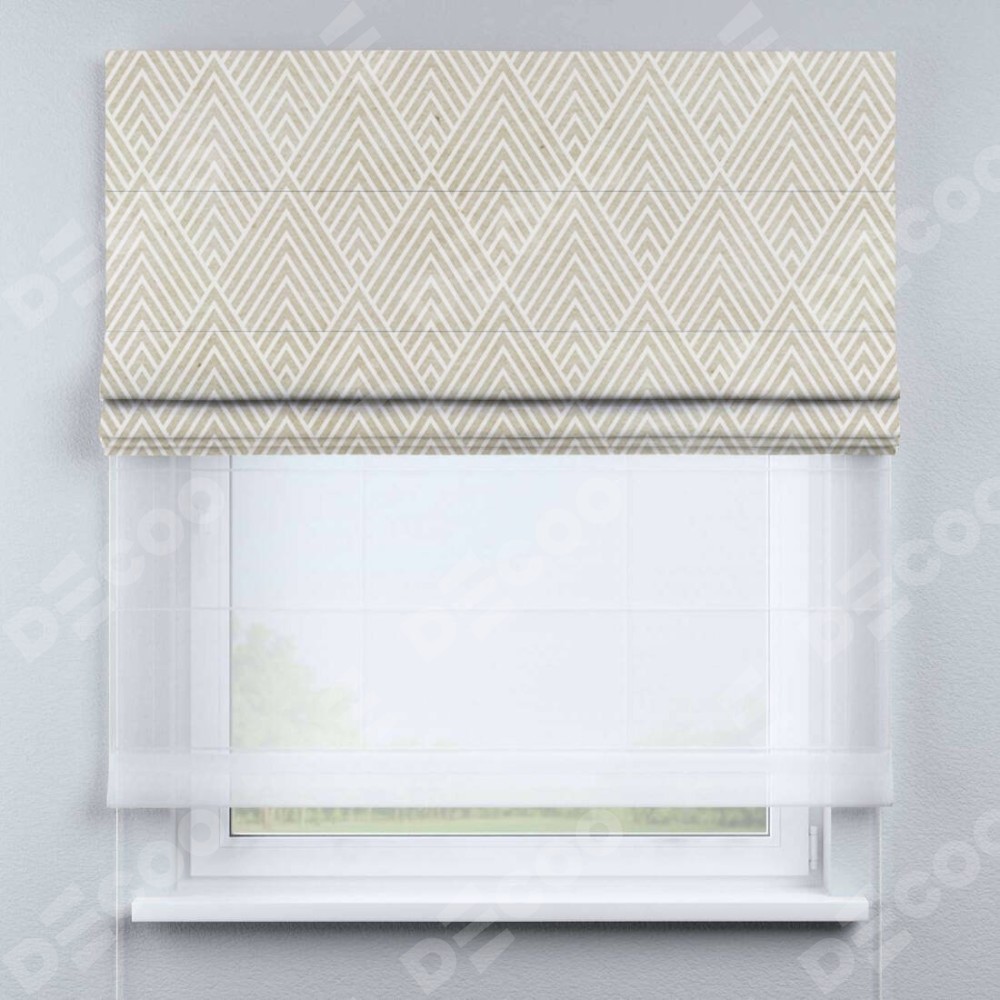 Римская штора день-ночь производителя «Cortin», используется для проёма, пошита из двух полотен, с лицевой блэкаут с нанесением сублимационной печати «Арлекино», вторая ткань тюль (по стандарту комплектуется тюль белого цвета артикул V-01). Имеет универсальный механизм и подходит для монтажа: на потолок, на стену и в нишу.