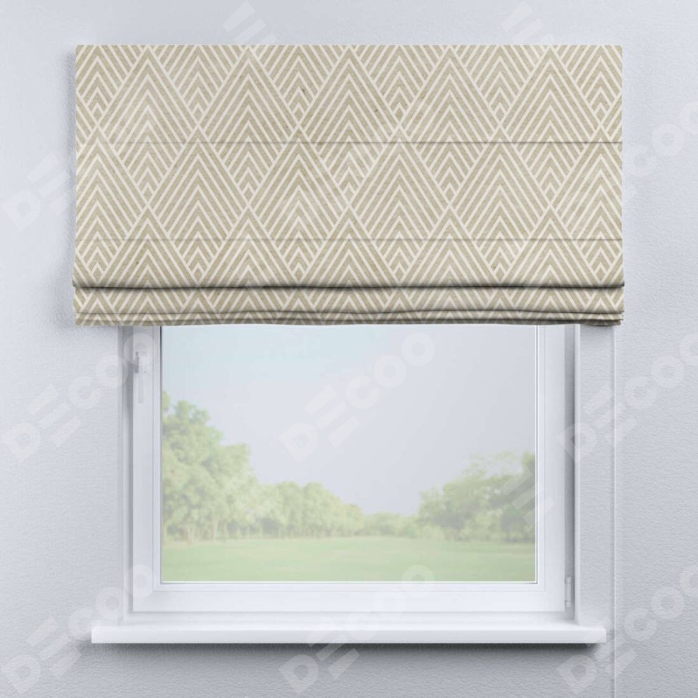 Римская штора производителя «Cortin», используется для проёма, пошита из ткани блэкаут с нанесением сублимационной печати «Арлекино». Имеет универсальный механизм и подходит для монтажа: на потолок, на стену и в нишу.