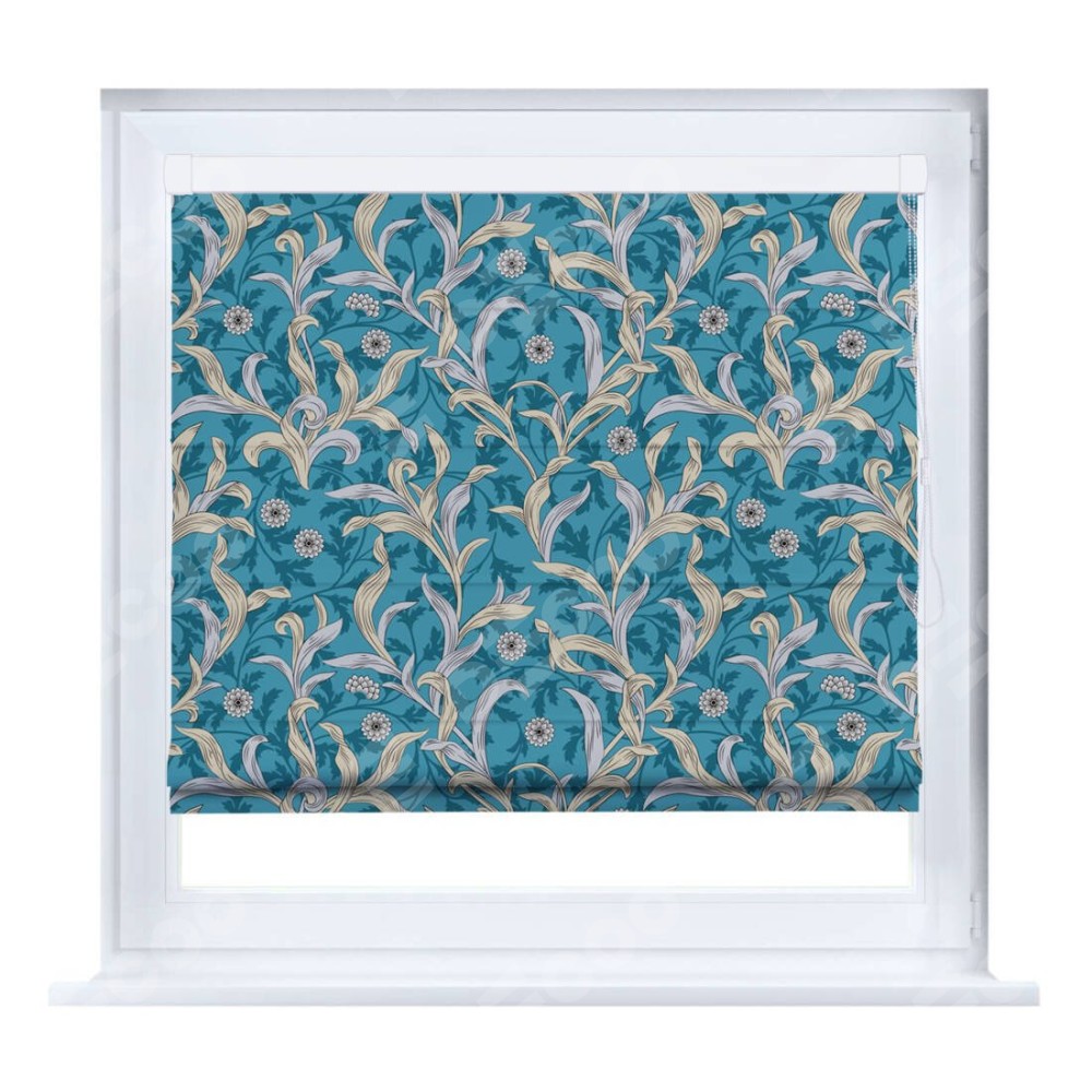 Римская штора производителя «Cortin», устанавливается на створку окна, пошита из ткани блэкаут с нанесением сублимационной печати «Винтажные листья». Штора шьётся по индивидуальным размерам, для данного типа римской шторы возможная ширина от 35 до 150 см., высота до 250 см.