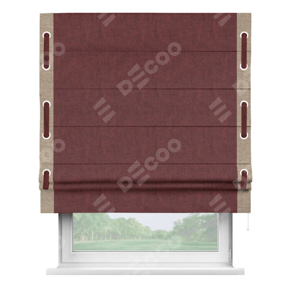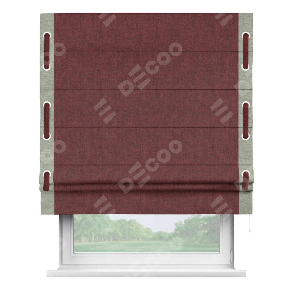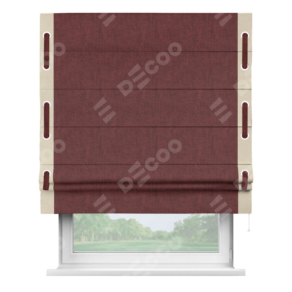 Римская штора «Кортин» с кантом Стрим Дуо (люверсы с пояском), для проема, ткань лён кашемир бордовый