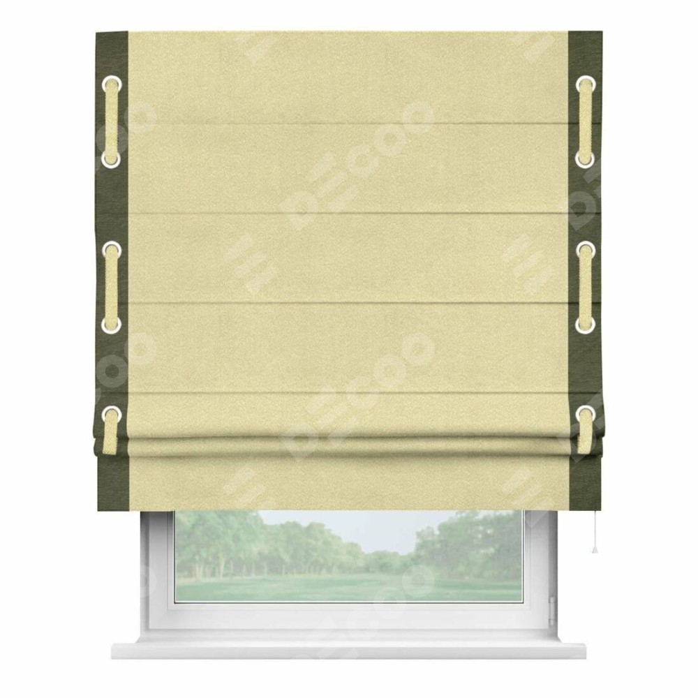 Римская штора «Кортин» с кантом Стрим Дуо (люверсы с пояском), для проема, ткань софт однотонный молочный