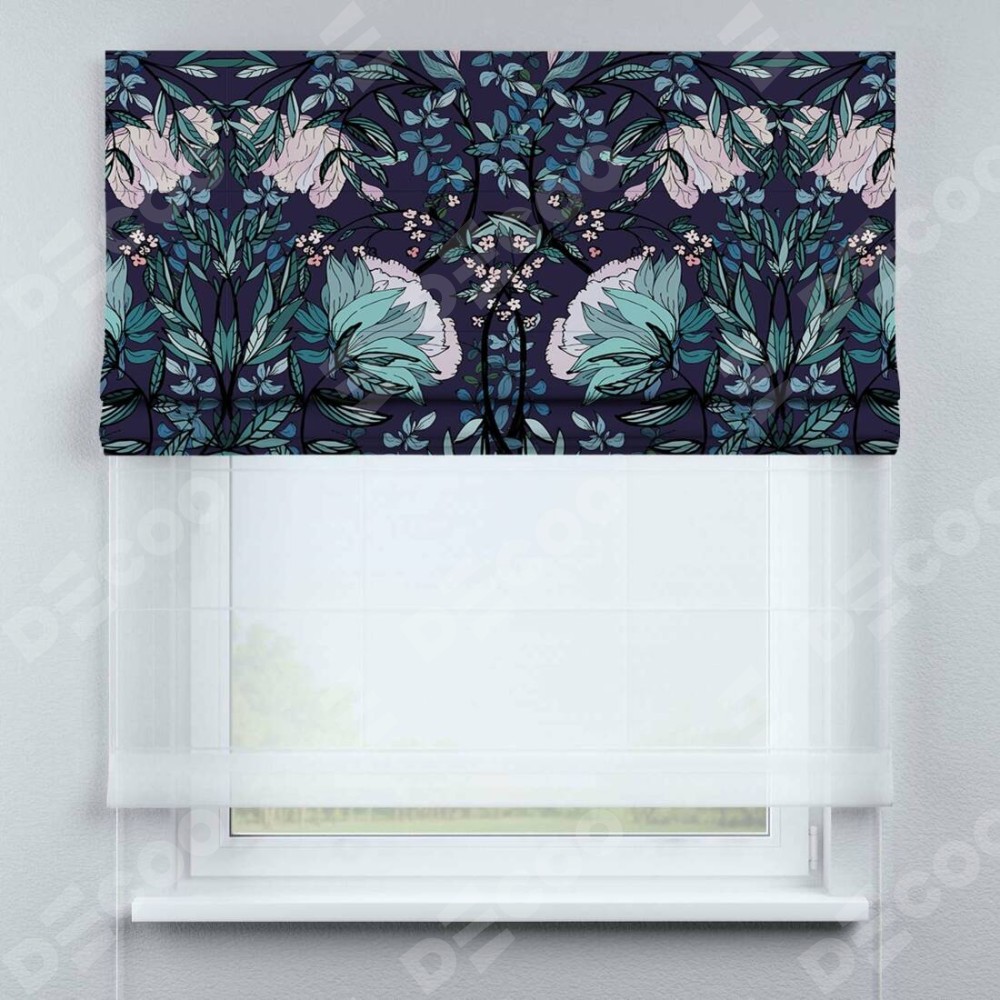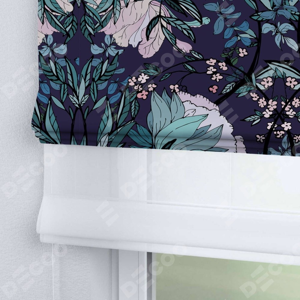 Римская штора «Кортин» день-ночь «Цветочный индиго»