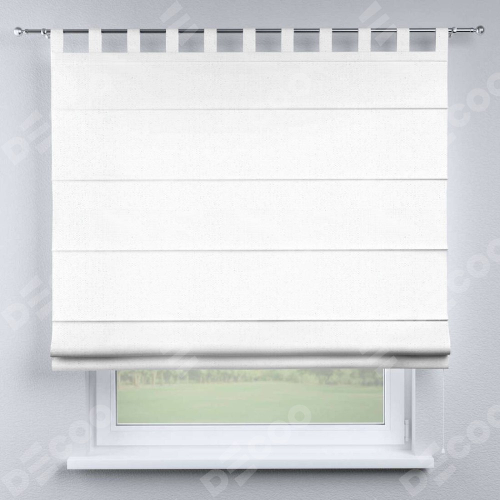Римская штора производителя «Cortin», используется для проёма, пошита из ткани лён белый, артикул ткани 7439. Данная модель пошита на петлях, комплектуется на выбор круглым карнизом и подходит для монтажа на стену. Римская штора на петлях имеет простую систему регулировки высоты, отличительным преимуществом данной модели является простой способ монтажа. Достаточно повесить ее на трубу и штора готова!