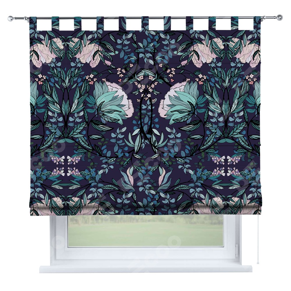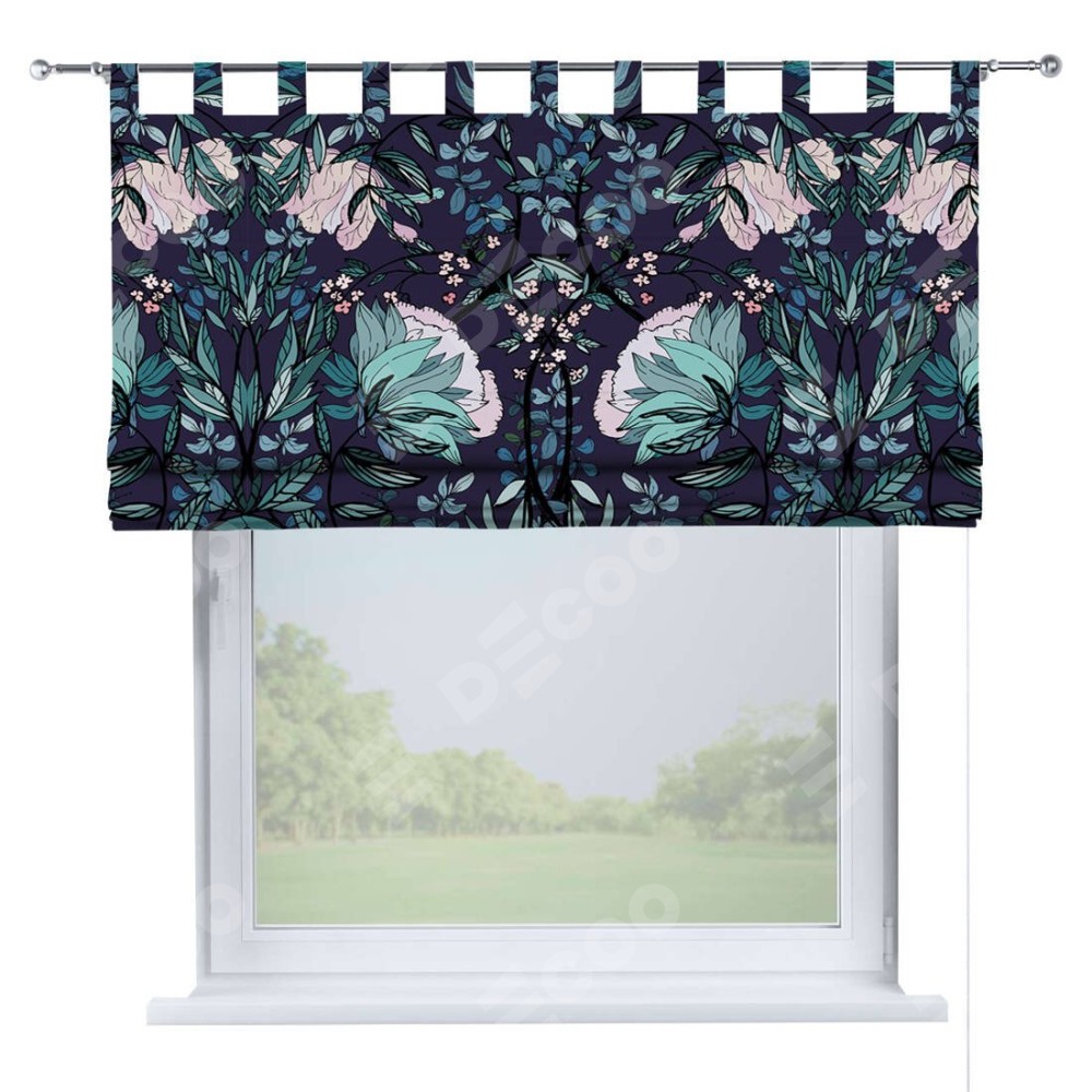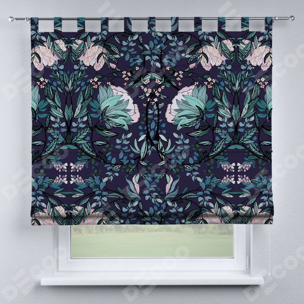Римская штора «Кортин» на петлях «Цветочный индиго»