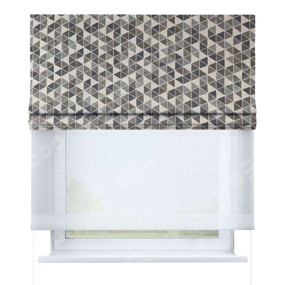 Римская штора «Кортин» день-ночь, ткань димаут «Треугольники синие»
