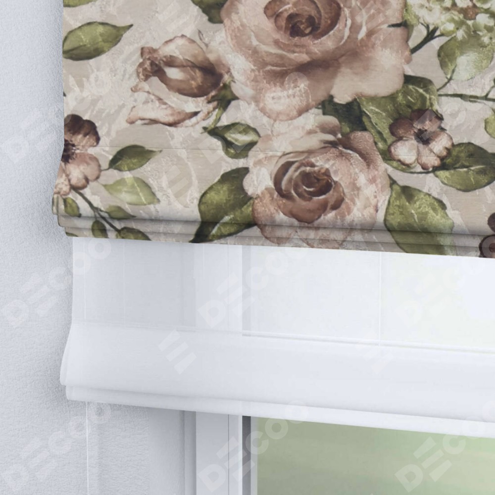 Римская штора «Кортин» день-ночь, ткань «Розы бежевые»