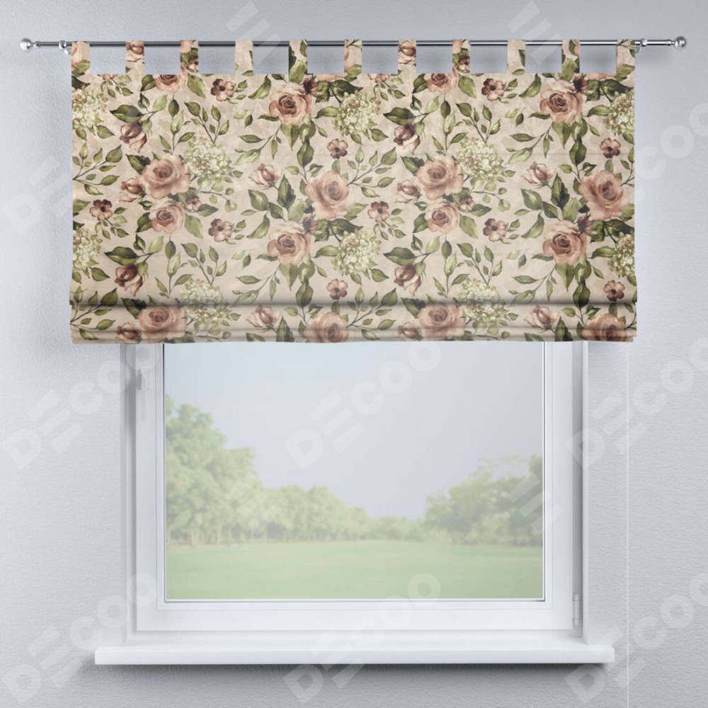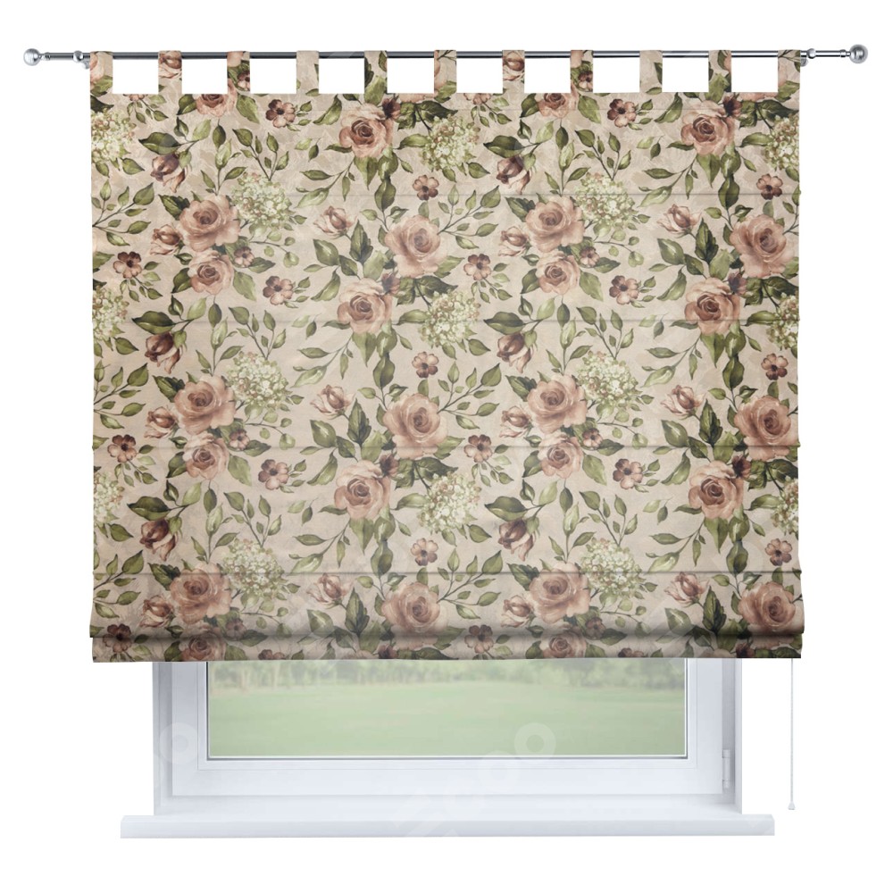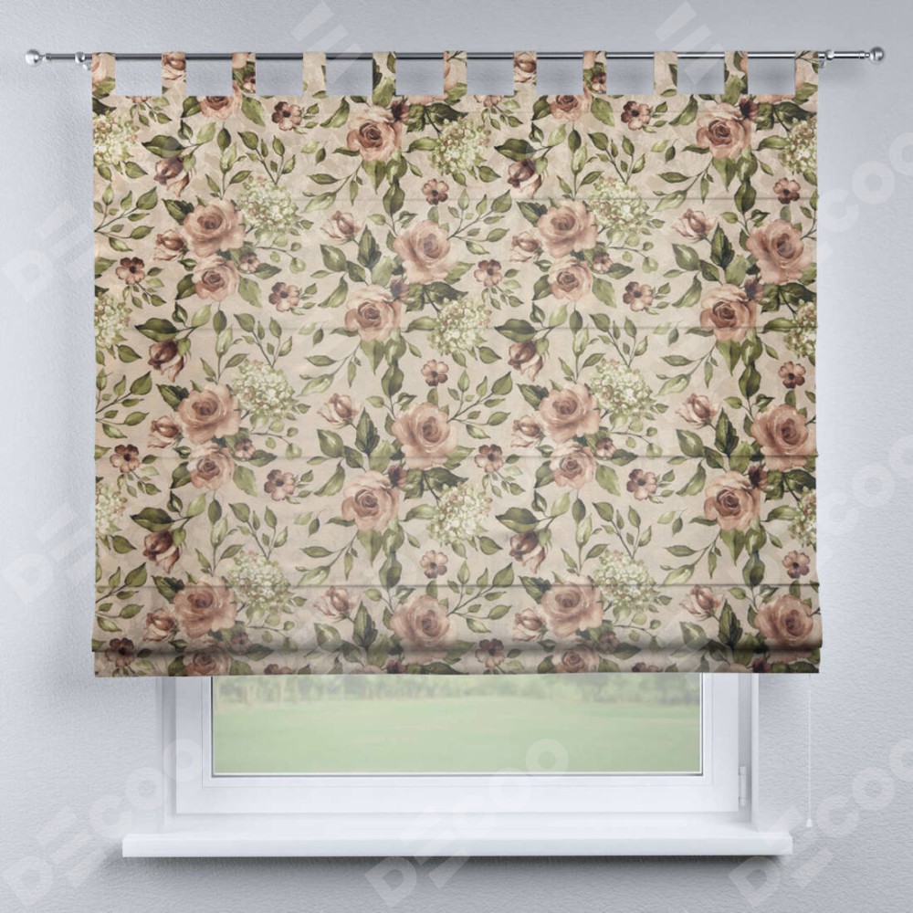 Римская штора производителя «Cortin», используется для проёма, пошита из ткани «Розы бежевые», артикул ткани 34564. Данная модель пошита на петлях, комплектуется на выбор круглым карнизом и подходит для монтажа на стену. Римская штора на петлях имеет простую систему регулировки высоты, отличительным преимуществом данной модели является простой способ монтажа. Достаточно повесить ее на трубу и штора готова!