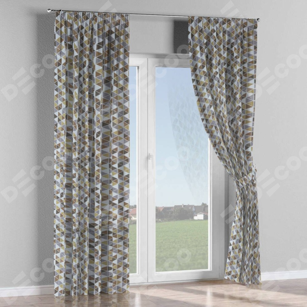 Комплект штор на тесьме «Карандаш», ткань димаут «Треугольники коричневые»