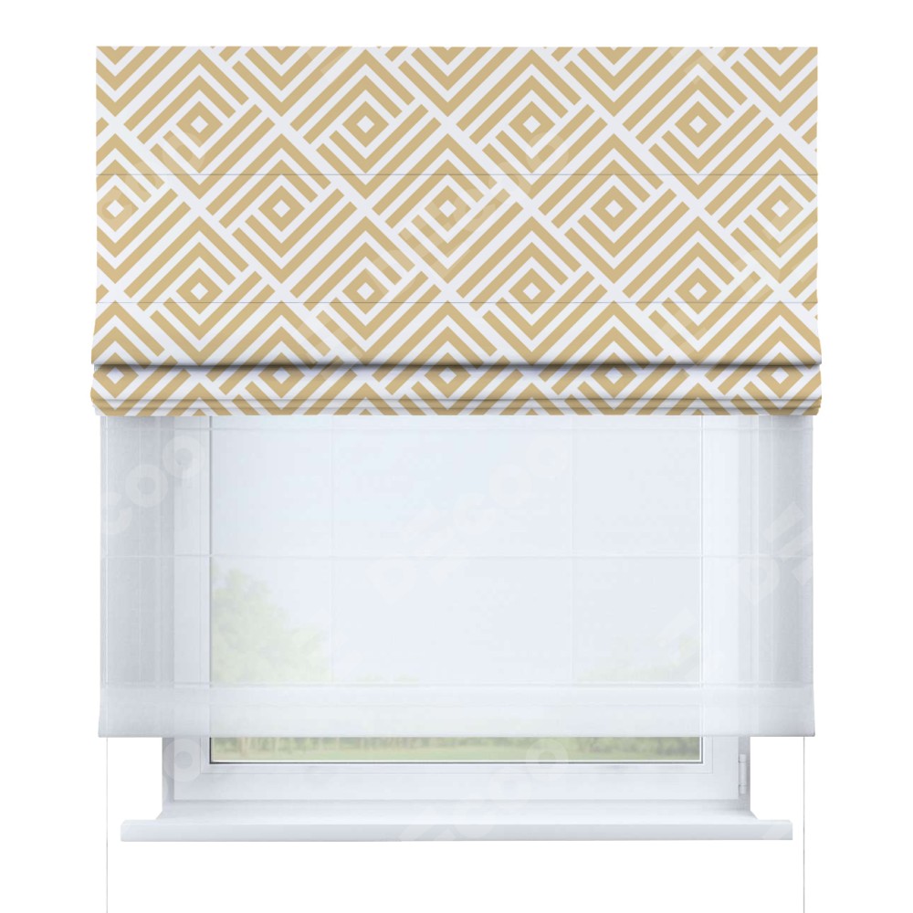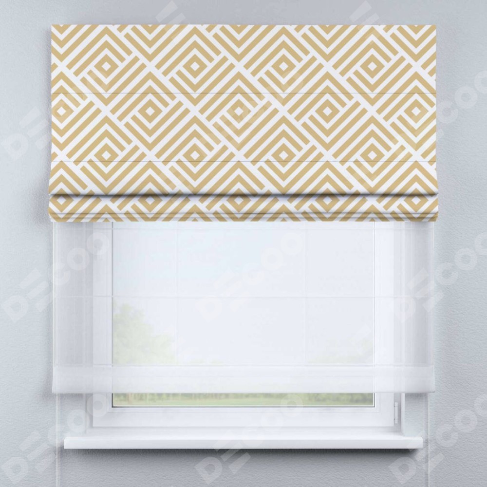 Римская штора день-ночь производителя «Cortin», используется для проёма, пошита из двух полотен, с лицевой блэкаут с нанесением сублимационной печати «Талисман», вторая ткань тюль (по стандарту комплектуется тюль белого цвета артикул V-01). Имеет универсальный механизм и подходит для монтажа: на потолок, на стену и в нишу.