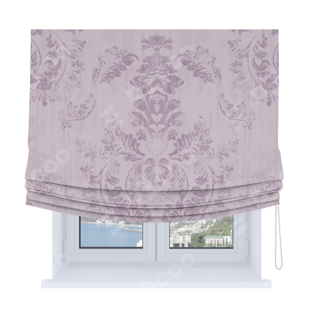Римская штора Soft с мягкими складками, «Винтажный узор сиреневый»