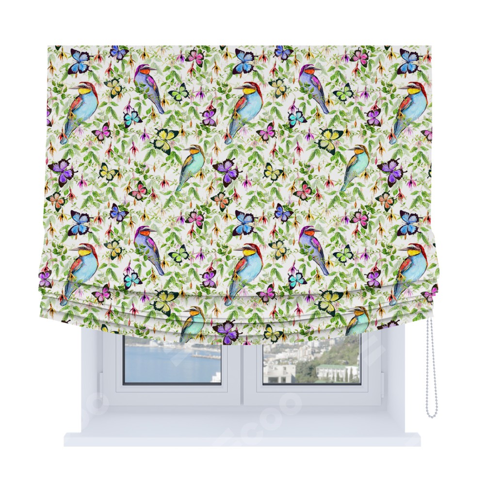 Римская штора Soft с мягкими складками, «Тропические птицы»