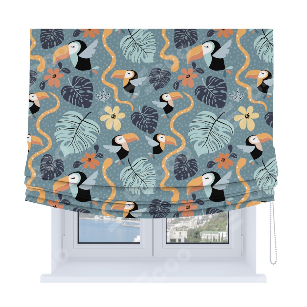 Римская штора Soft с мягкими складками, «Экзотические птицы»
