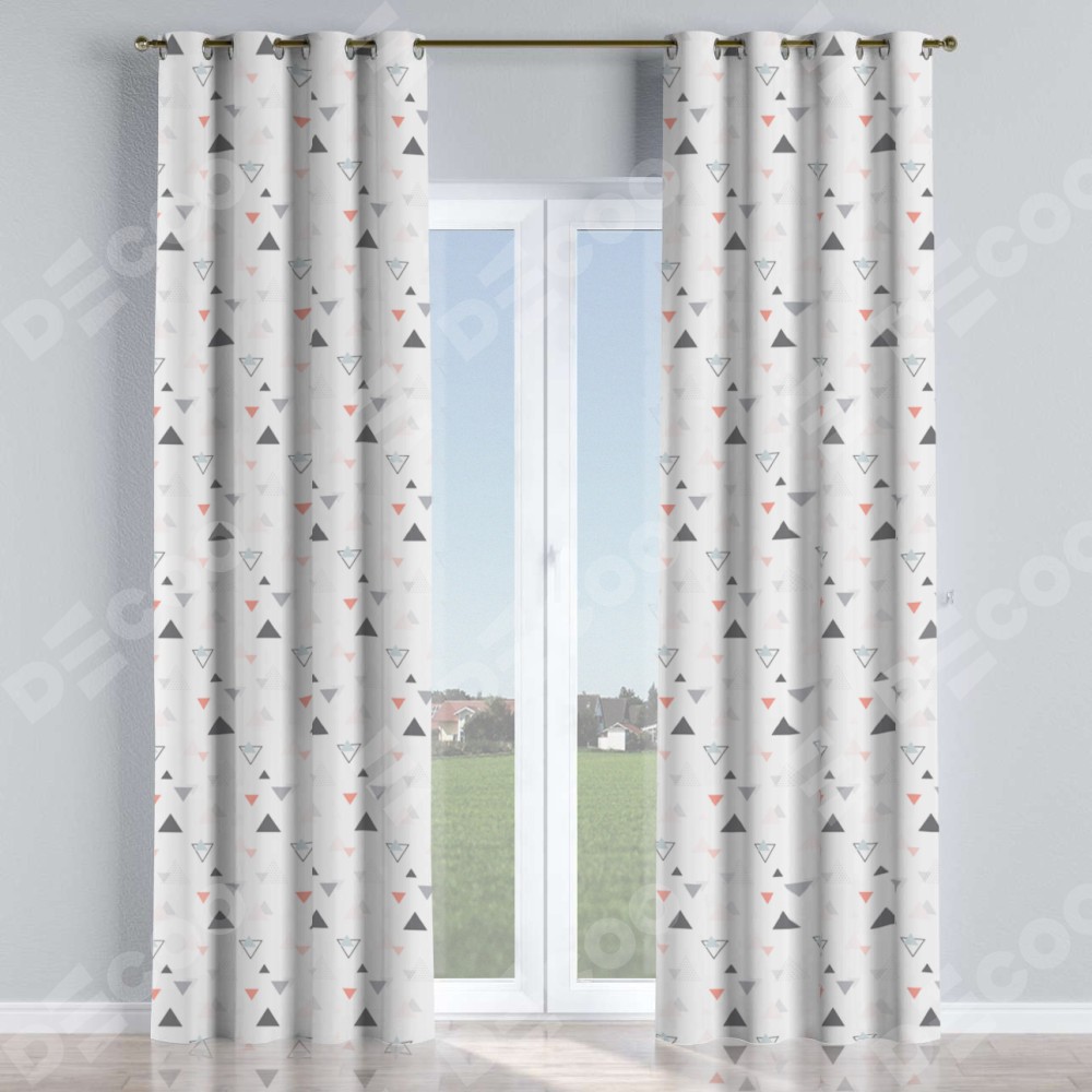 Комплект прямых штор, от производителя «Cortin», пошиты из ткани блэкаут с нанесением сублимационной печати «Дождь из треугольников». Данная модель пошита на люверсах, комплектуется на выбор круглым карнизом и подходит для монтажа на стену или потолок. Прямые шторы на люверсах шьются по стандарту с коэффициентом 1/2 (на 100 см. ширины проёма 200 см. ширины ткани), отличительным преимуществом данной модели является простой способ монтажа. Достаточно повесить ее на трубу и штора готова!