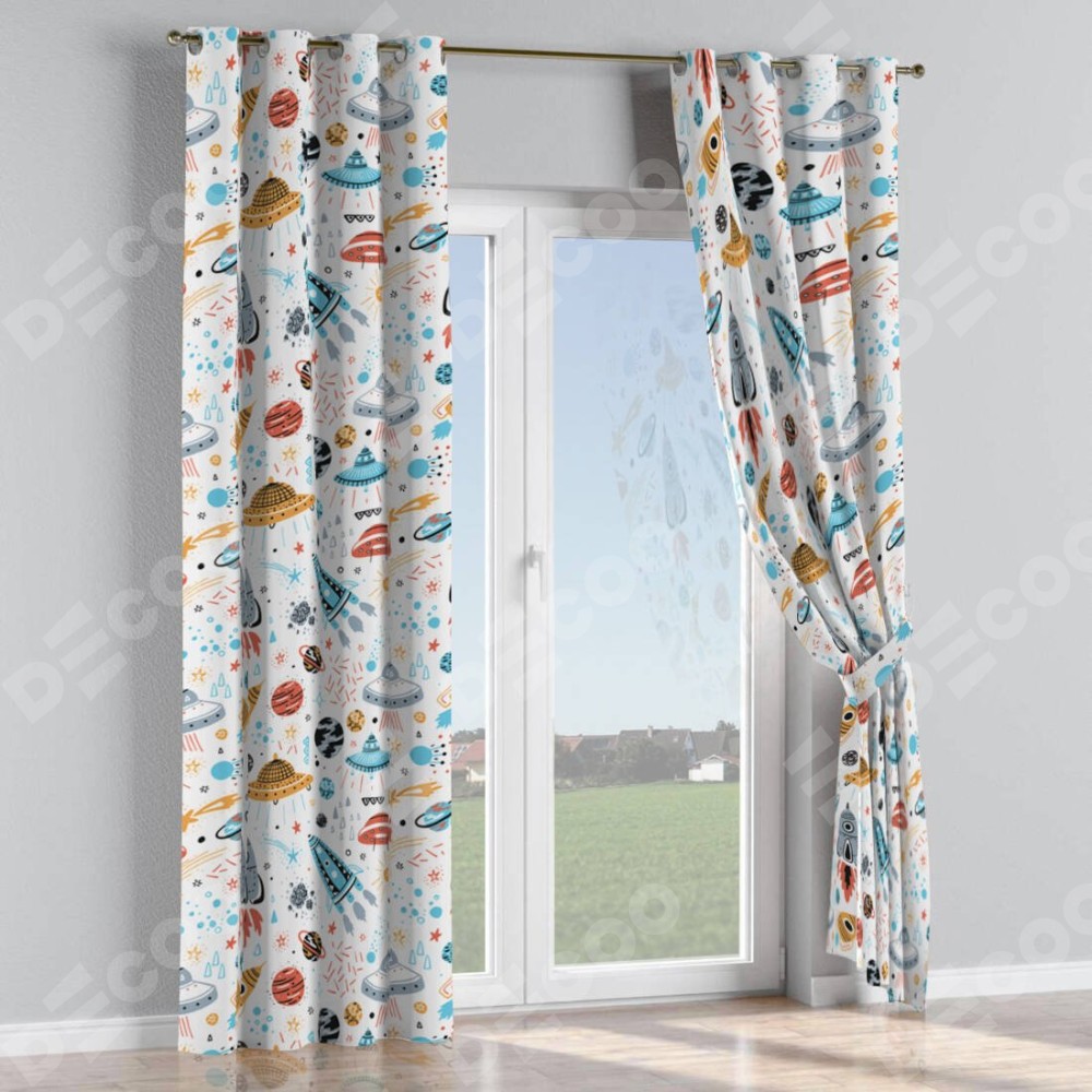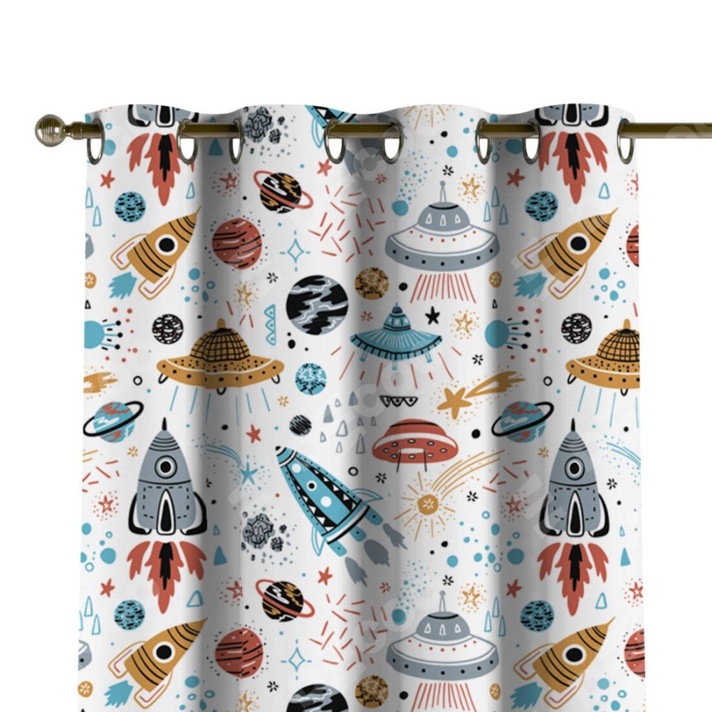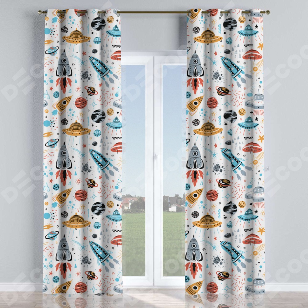 Комплект прямых штор, от производителя «Cortin», пошиты из ткани блэкаут с нанесением сублимационной печати «Космическое приключение». Данная модель пошита на люверсах, комплектуется на выбор круглым карнизом и подходит для монтажа на стену или потолок. Прямые шторы на люверсах шьются по стандарту с коэффициентом 1/2 (на 100 см. ширины проёма 200 см. ширины ткани), отличительным преимуществом данной модели является простой способ монтажа. Достаточно повесить ее на трубу и штора готова!