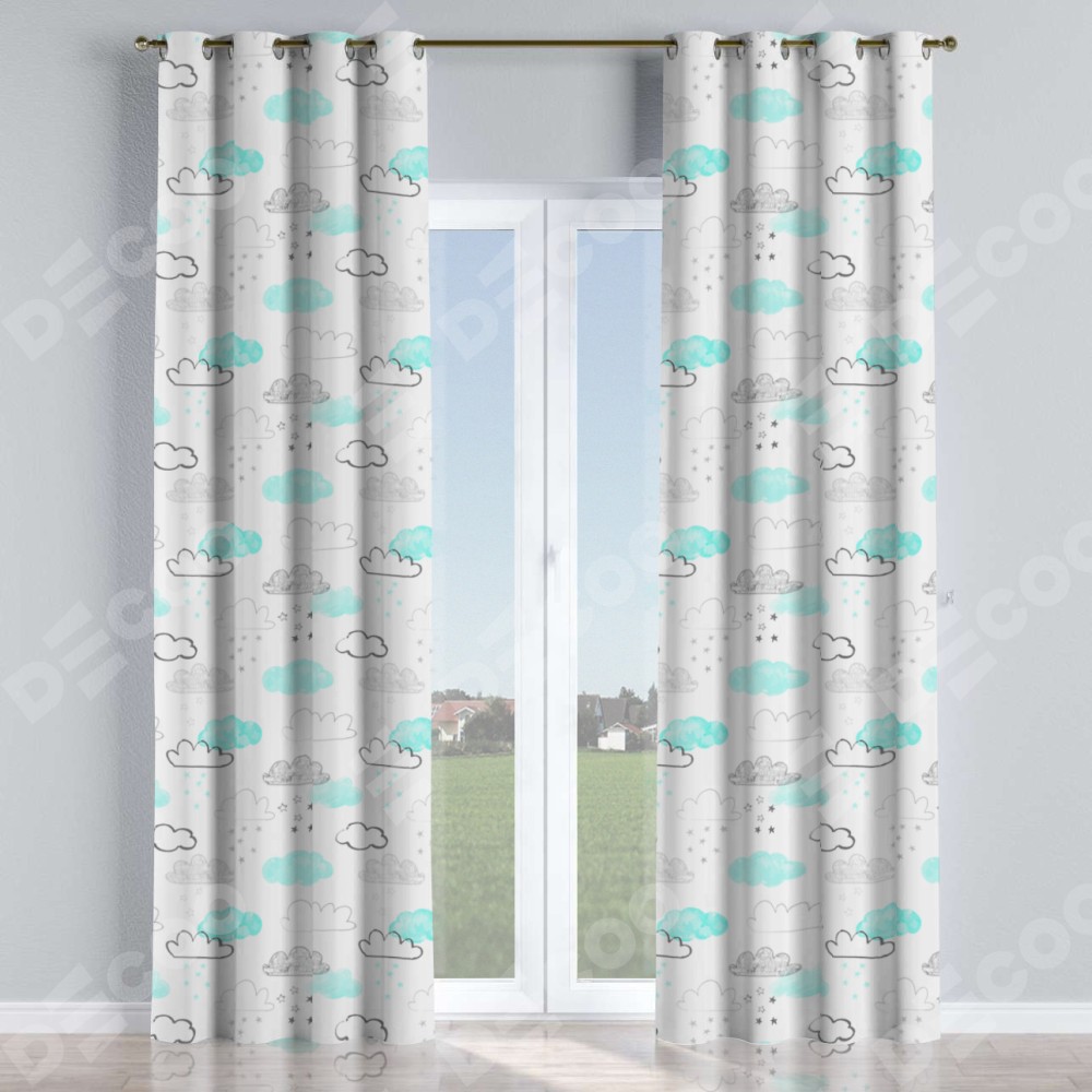 Комплект прямых штор, от производителя «Cortin», пошиты из ткани блэкаут с нанесением сублимационной печати «Облака и звёзды». Данная модель пошита на люверсах, комплектуется на выбор круглым карнизом и подходит для монтажа на стену или потолок. Прямые шторы на люверсах шьются по стандарту с коэффициентом 1/2 (на 100 см. ширины проёма 200 см. ширины ткани), отличительным преимуществом данной модели является простой способ монтажа. Достаточно повесить ее на трубу и штора готова!