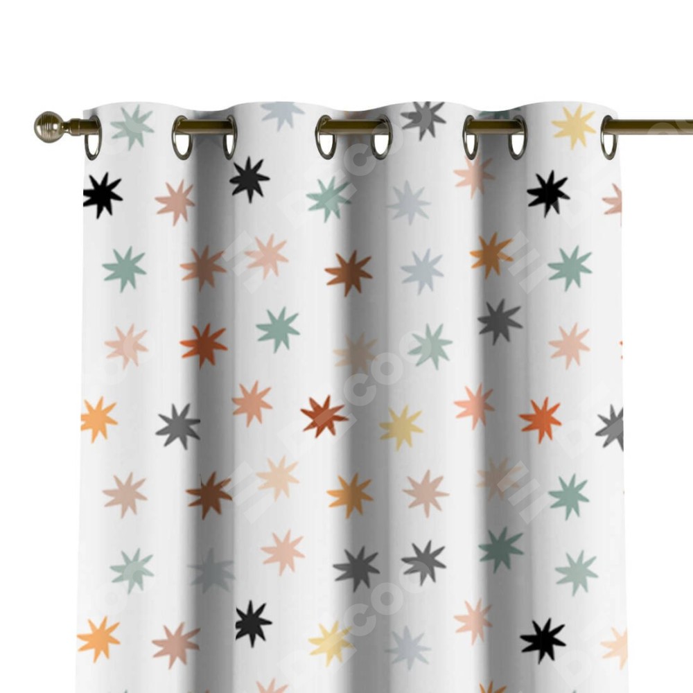 Комплект прямых штор, от производителя «Cortin», пошиты из ткани блэкаут с нанесением сублимационной печати «Разноцветные звёзды». Данная модель пошита на люверсах, комплектуется на выбор круглым карнизом и подходит для монтажа на стену или потолок. Прямые шторы на люверсах шьются по стандарту с коэффициентом 1/2 (на 100 см. ширины проёма 200 см. ширины ткани), отличительным преимуществом данной модели является простой способ монтажа. Достаточно повесить ее на трубу и штора готова!