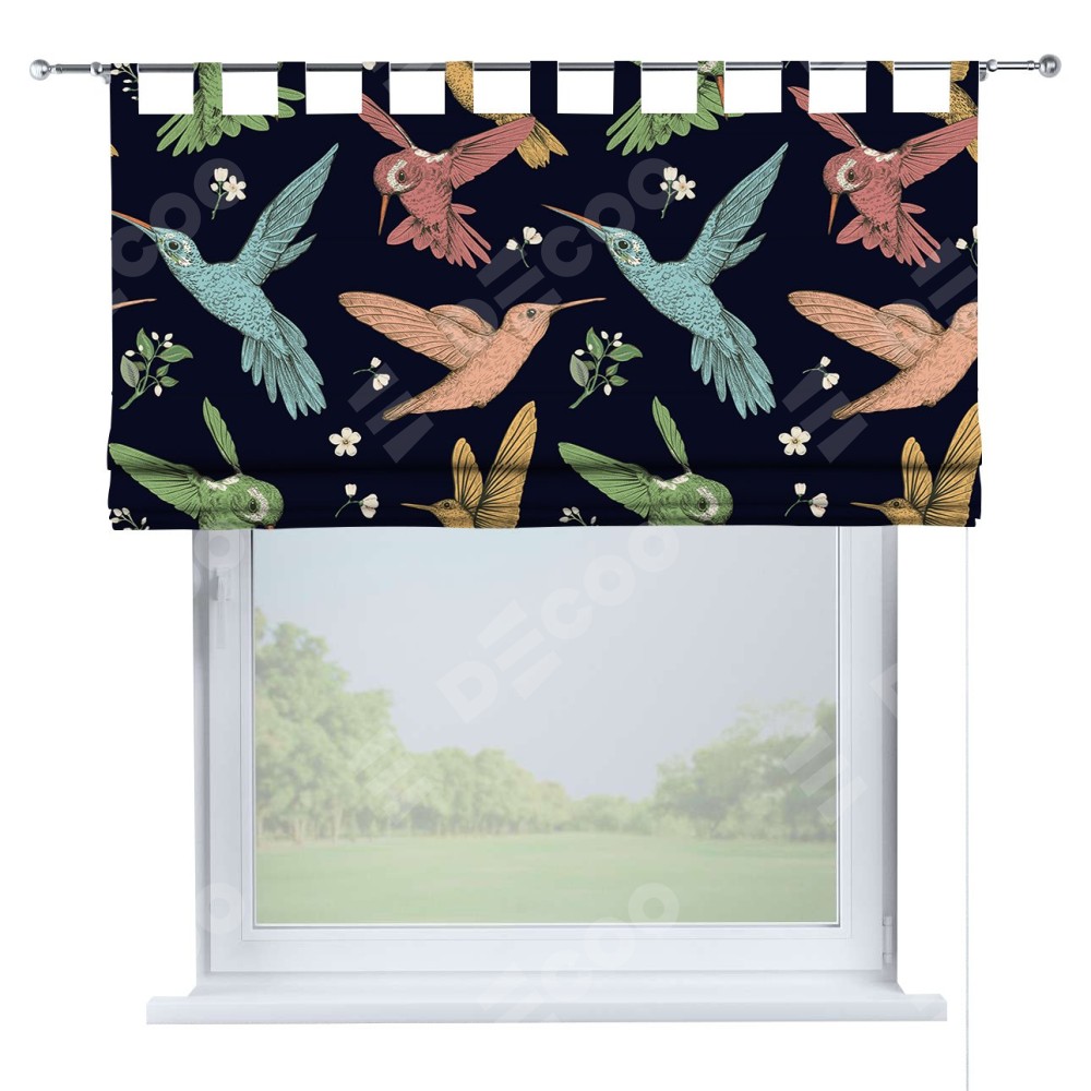 Римская штора «Кортин» на петлях «Птицы и цветы»