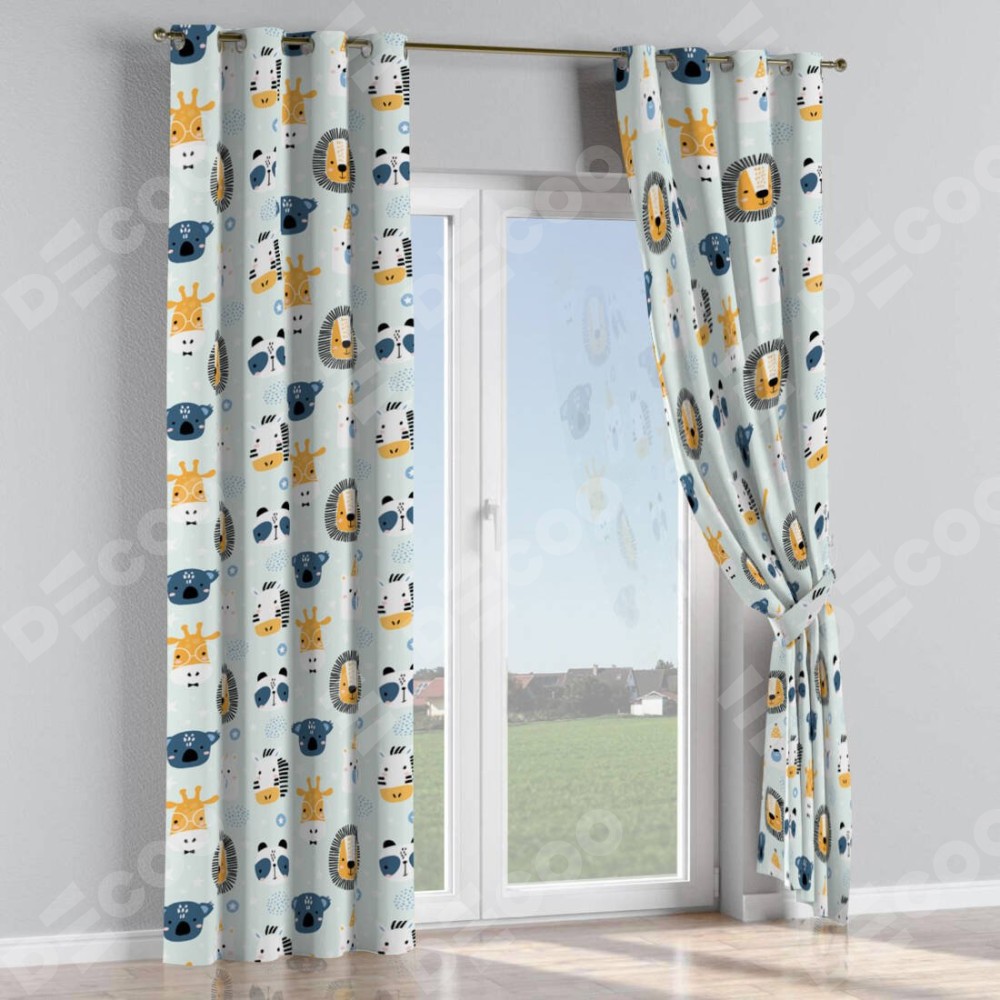 Комплект прямых штор, от производителя «Cortin», пошиты из ткани блэкаут с нанесением сублимационной печати «Чудесный зоопарк». Данная модель пошита на люверсах, комплектуется на выбор круглым карнизом и подходит для монтажа на стену или потолок. Прямые шторы на люверсах шьются по стандарту с коэффициентом 1/2 (на 100 см. ширины проёма 200 см. ширины ткани), отличительным преимуществом данной модели является простой способ монтажа. Достаточно повесить ее на трубу и штора готова!