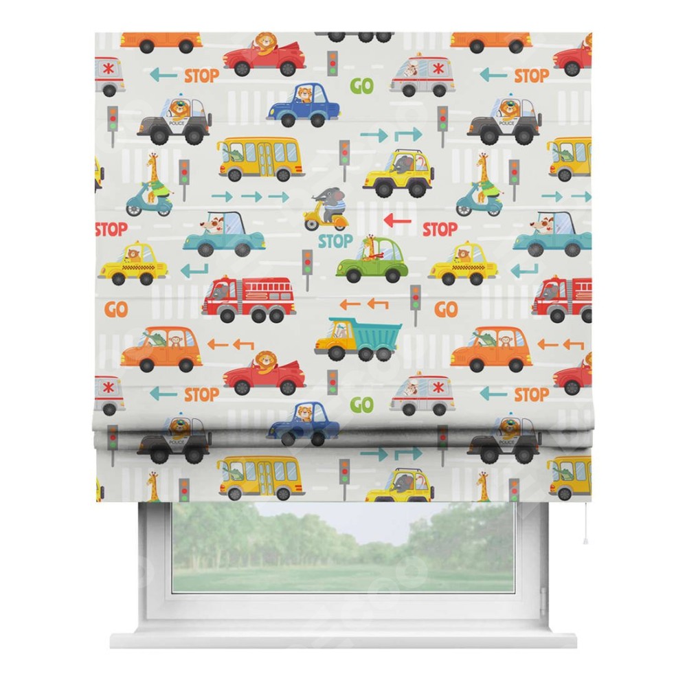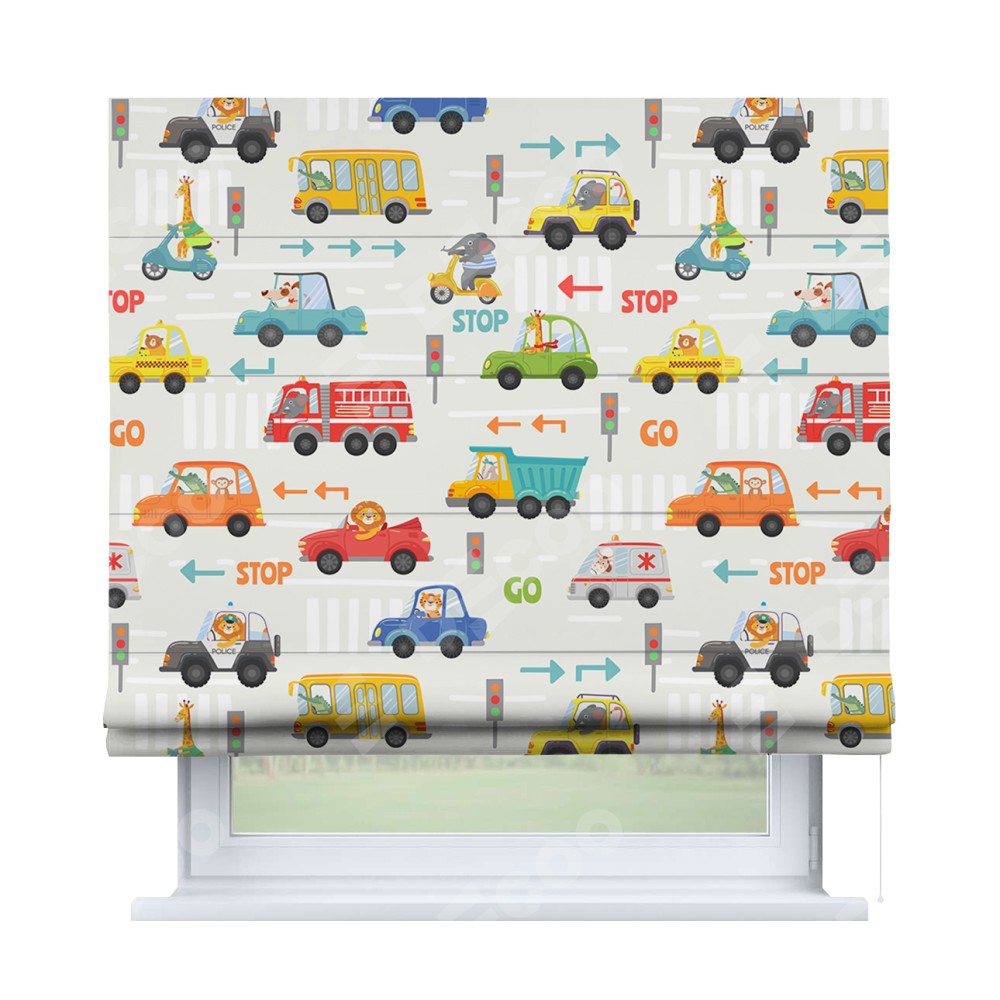 Римская штора «Кортин» для проема «Дорожные правила»