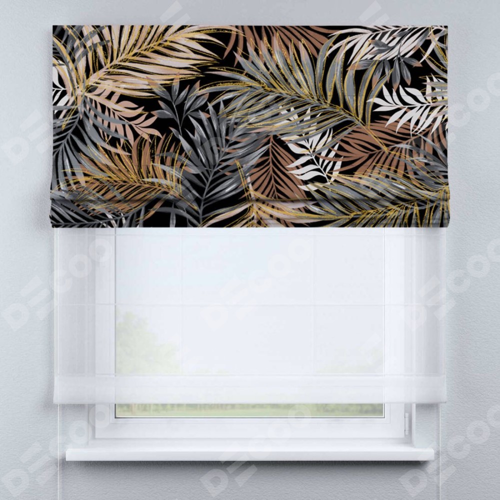 Римская штора день-ночь производителя «Cortin», используется для проёма, пошита из двух полотен, с лицевой блэкаут с нанесением сублимационной печати «Закат в тропиках», вторая ткань тюль (по стандарту комплектуется тюль белого цвета артикул V-01). Имеет универсальный механизм и подходит для монтажа: на потолок, на стену и в нишу.