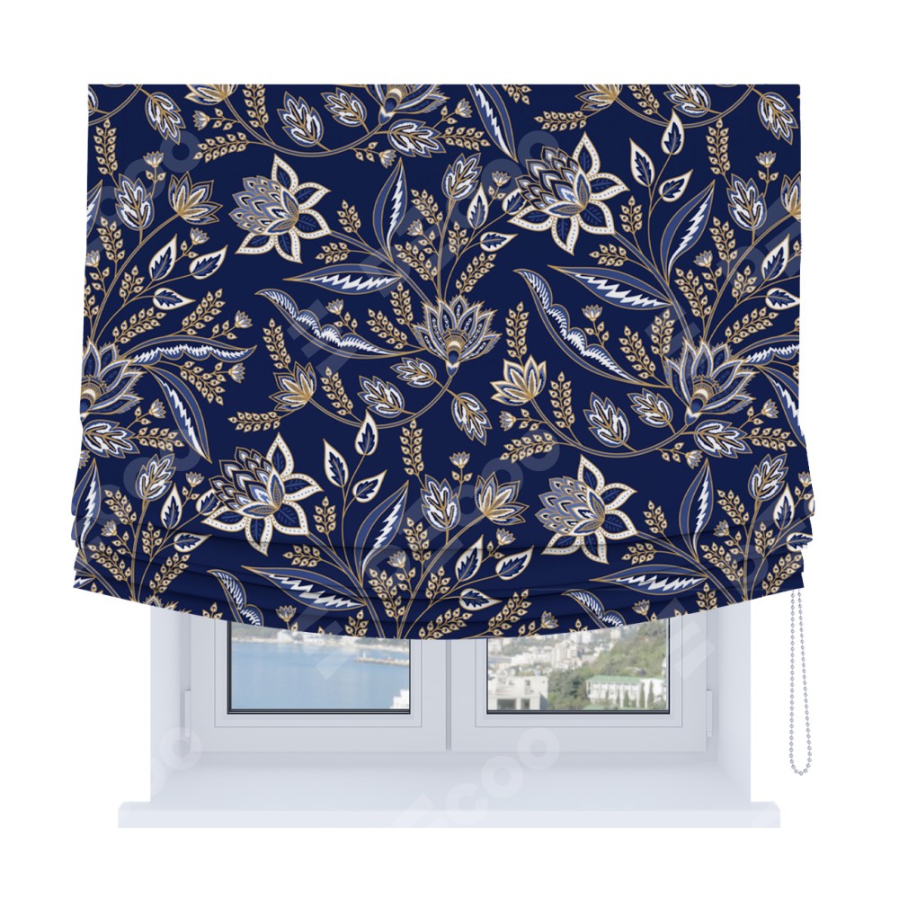 Римская штора Soft с мягкими складками, «Индиго батик»