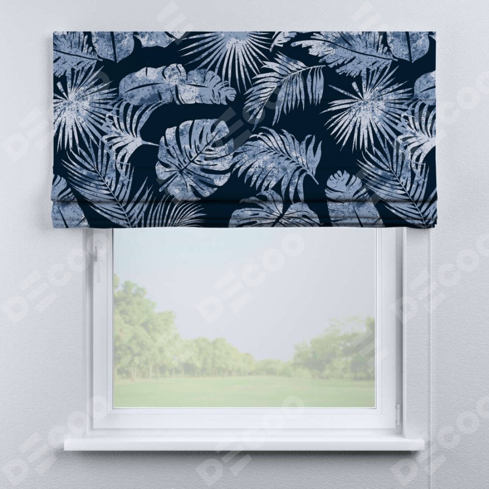 Римская штора производителя «Cortin», используется для проёма, пошита из ткани блэкаут с нанесением сублимационной печати «Тропическая ночь». Имеет универсальный механизм и подходит для монтажа: на потолок, на стену и в нишу.