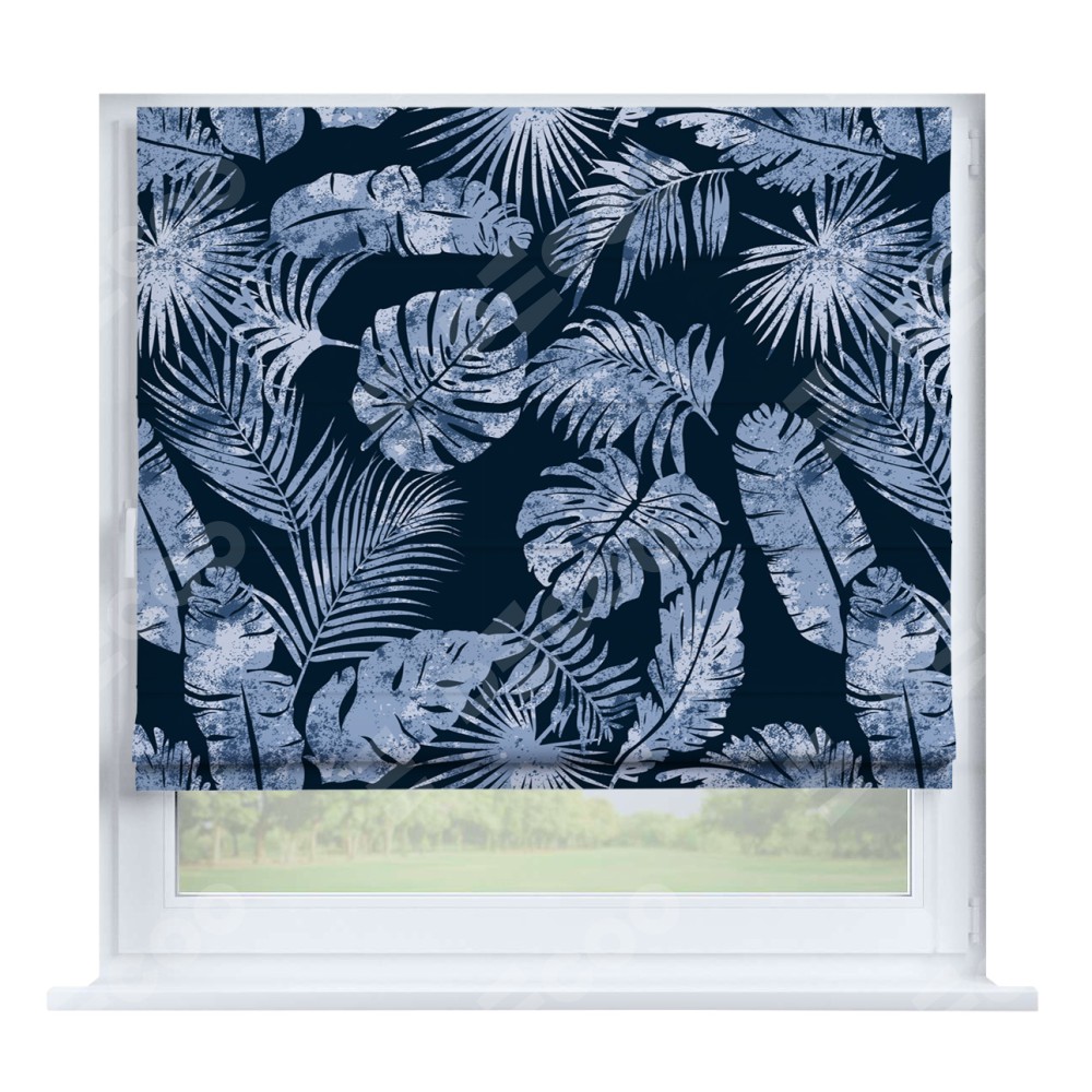 Римская штора производителя «Cortin», устанавливается на створку окна, пошита из ткани блэкаут с нанесением сублимационной печати «Тропическая ночь». Штора шьётся по индивидуальным размерам, для данного типа римской шторы возможная ширина от 35 до 150 см., высота до 250 см.