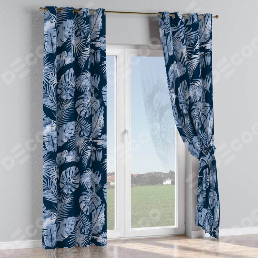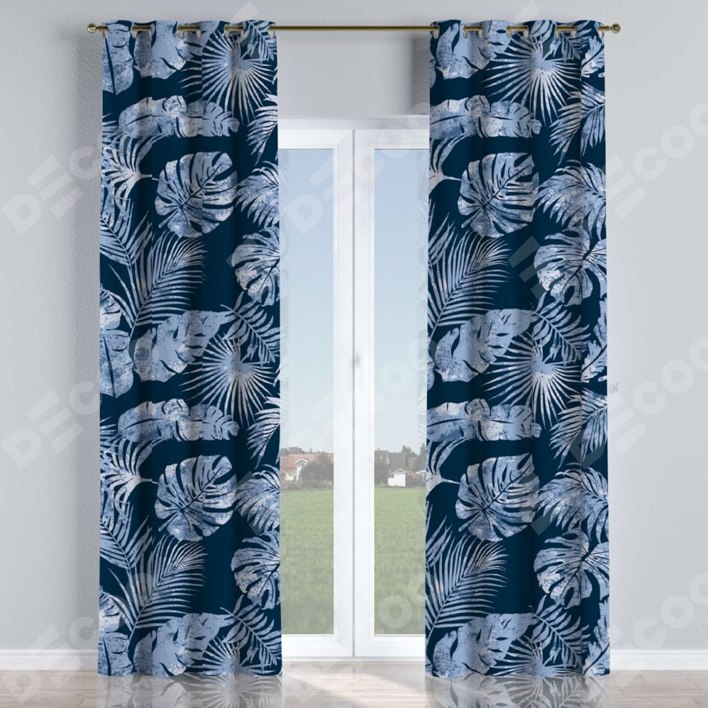 Комплект прямых штор, от производителя «Cortin», пошиты из ткани блэкаут с нанесением сублимационной печати «Тропическая ночь». Данная модель пошита на люверсах, комплектуется на выбор круглым карнизом и подходит для монтажа на стену или потолок. Прямые шторы на люверсах шьются по стандарту с коэффициентом 1/2 (на 100 см. ширины проёма 200 см. ширины ткани), отличительным преимуществом данной модели является простой способ монтажа. Достаточно повесить ее на трубу и штора готова!
