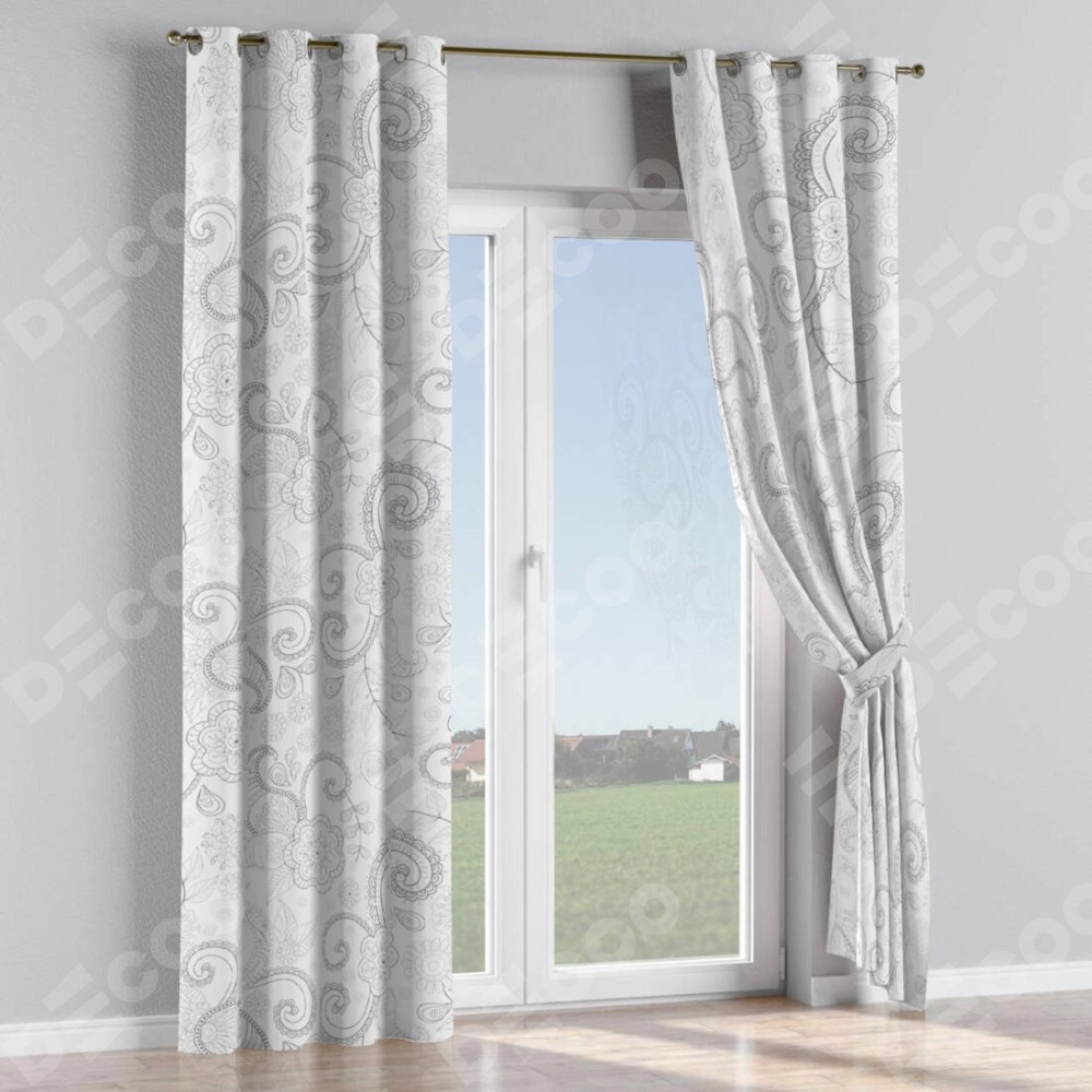 Комплект прямых штор, от производителя «Cortin», пошиты из ткани блэкаут с нанесением сублимационной печати «Изысканный пейсли». Данная модель пошита на люверсах, комплектуется на выбор круглым карнизом и подходит для монтажа на стену или потолок. Прямые шторы на люверсах шьются по стандарту с коэффициентом 1/2 (на 100 см. ширины проёма 200 см. ширины ткани), отличительным преимуществом данной модели является простой способ монтажа. Достаточно повесить ее на трубу и штора готова!