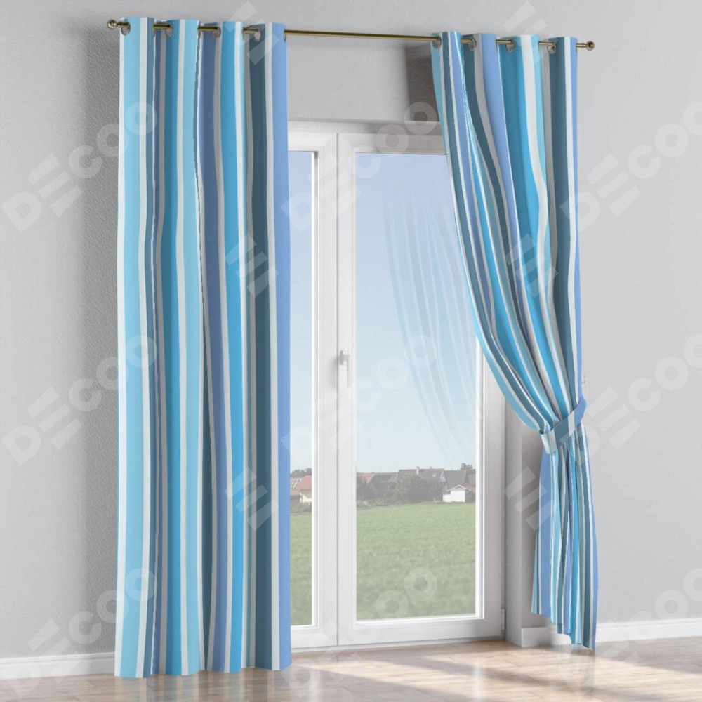 Комплект прямых штор, от производителя «Cortin», пошиты из ткани блэкаут с нанесением сублимационной печати «Сине-голубые вертикальные полоски». Данная модель пошита на люверсах, комплектуется на выбор круглым карнизом и подходит для монтажа на стену или потолок. Прямые шторы на люверсах шьются по стандарту с коэффициентом 1/2 (на 100 см. ширины проёма 200 см. ширины ткани), отличительным преимуществом данной модели является простой способ монтажа. Достаточно повесить ее на трубу и штора готова!