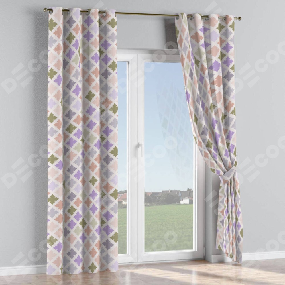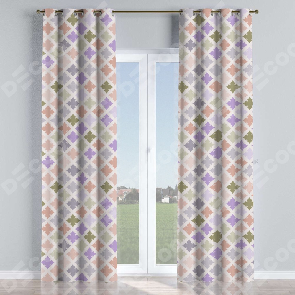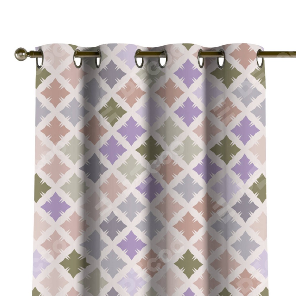 Комплект прямых штор, от производителя «Cortin», пошиты из ткани блэкаут с нанесением сублимационной печати «Фигурные плитки». Данная модель пошита на люверсах, комплектуется на выбор круглым карнизом и подходит для монтажа на стену или потолок. Прямые шторы на люверсах шьются по стандарту с коэффициентом 1/2 (на 100 см. ширины проёма 200 см. ширины ткани), отличительным преимуществом данной модели является простой способ монтажа. Достаточно повесить ее на трубу и штора готова!