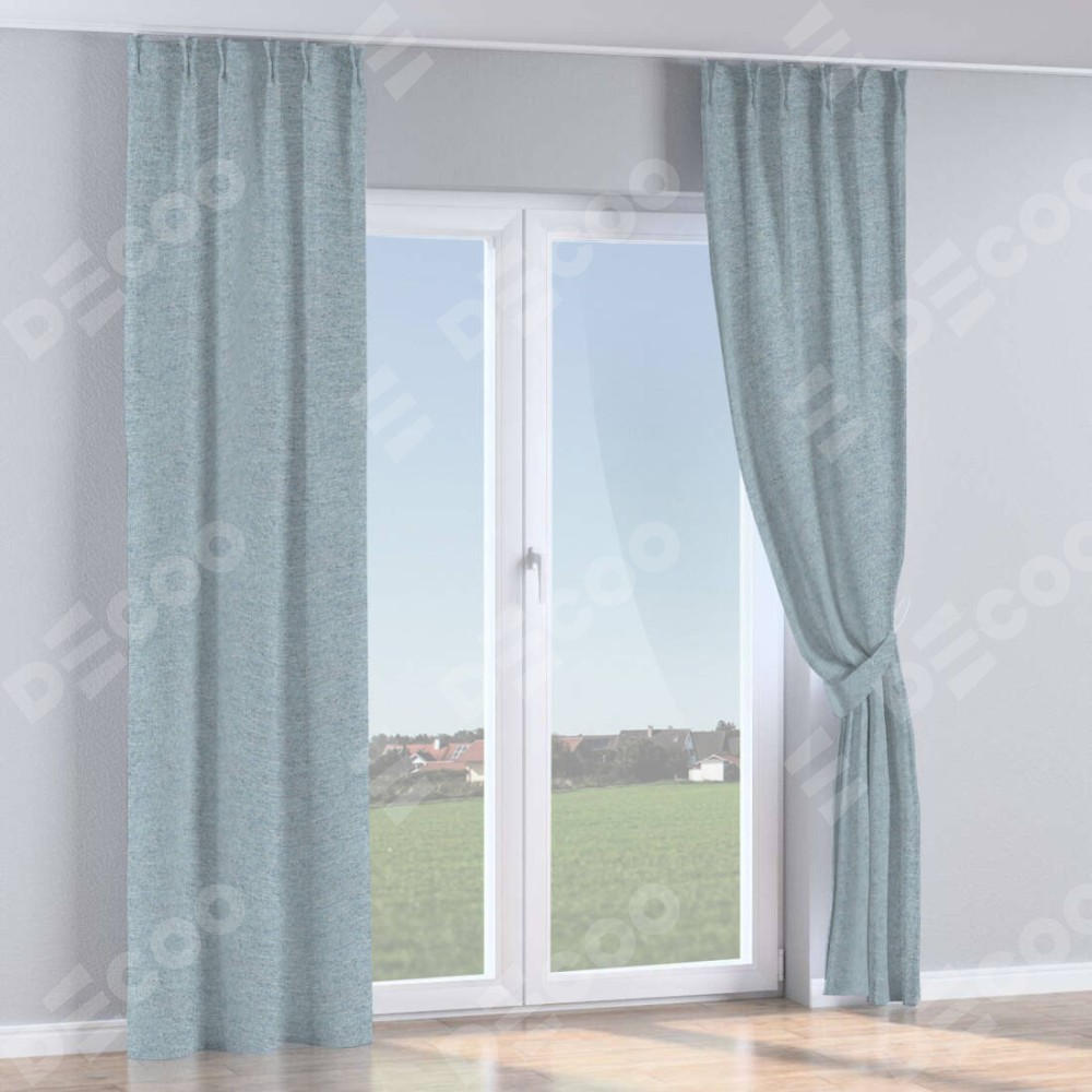 Комплект прямых штор, от производителя «Cortin», пошиты из ткани стиф димаут светло-серый, артикул ткани 44025. С изнаночной стороны в верхней части штор пристрачивается шторная лента с декоративными складками «Кустик». Для создания элегантных складок прямые шторы шьются по стандарту с коэффициентом 1:2 (на 100 см. ширины проёма 200 см. ширины ткани).