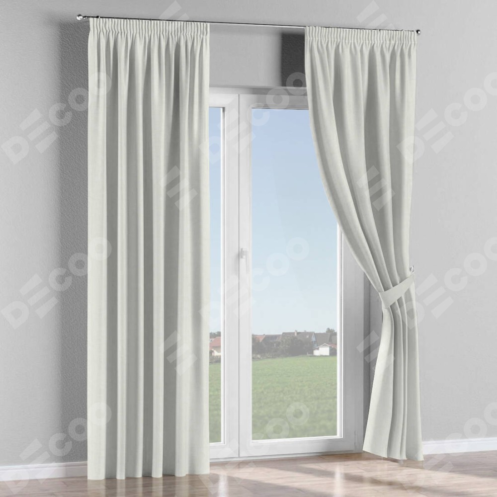 Комплект прямых штор, от производителя «Cortin», пошиты из ткани лён молочный, артикул ткани 23568. С изнаночной стороны в верхней части штор пристрачивается шторная лента с декоративными складками «Карандаш». Для создания элегантных складок прямые шторы шьются по стандарту с коэффициентом 1:2 (на 100 см. ширины проёма 200 см. ширины ткани).