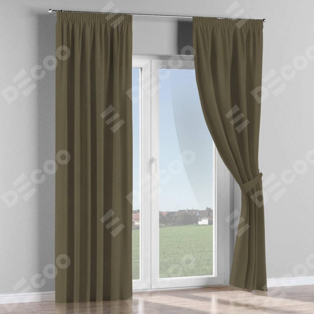 Комплект прямых штор, от производителя «Cortin», пошиты из ткани блэкаут однотонный кофейный, артикул ткани 6668−22. С изнаночной стороны в верхней части штор пристрачивается шторная лента с декоративными складками «Карандаш». Для создания элегантных складок прямые шторы шьются по стандарту с коэффициентом 1:2 (на 100 см. ширины проёма 200 см. ширины ткани).