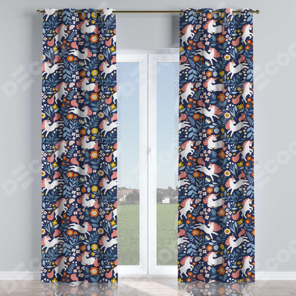 Комплект прямых штор, от производителя «Cortin», пошиты из ткани блэкаут с нанесением сублимационной печати «Цветы и единороги». Данная модель пошита на люверсах, комплектуется на выбор круглым карнизом и подходит для монтажа на стену или потолок. Прямые шторы на люверсах шьются по стандарту с коэффициентом 1/2 (на 100 см. ширины проёма 200 см. ширины ткани), отличительным преимуществом данной модели является простой способ монтажа. Достаточно повесить ее на трубу и штора готова!