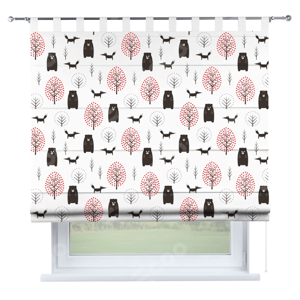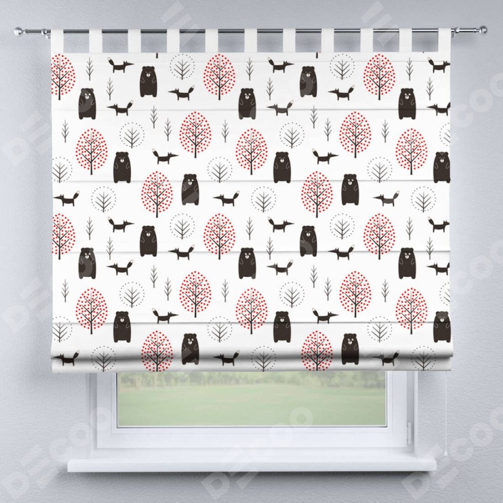 Римская штора производителя «Cortin», используется для проёма, пошита из ткани блэкаут с нанесением сублимационной печати «Сканди лес». Данная модель пошита на петлях, комплектуется на выбор круглым карнизом и подходит для монтажа на стену. Римская штора на петлях имеет простую систему регулировки высоты, отличительным преимуществом данной модели является простой способ монтажа. Достаточно повесить ее на трубу и штора готова!
