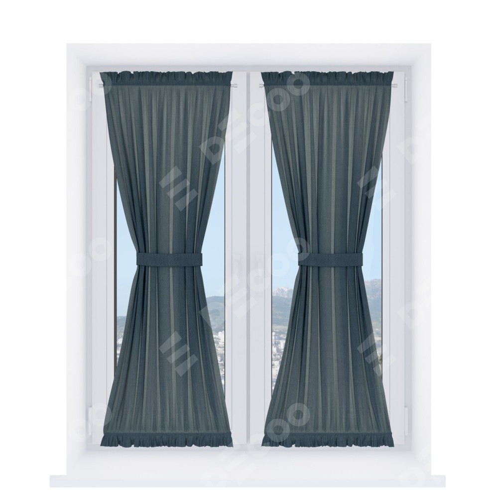 Штора «Песочные часы» производителя «Cortin», используется для створок окон и дверей, пошита из ткани лён димаут серо-синий, артикул ткани 03238.