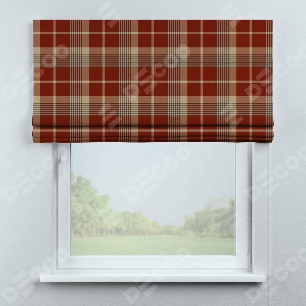 Римская штора «Кортин» для проема «Бежево-бордовая клетка»