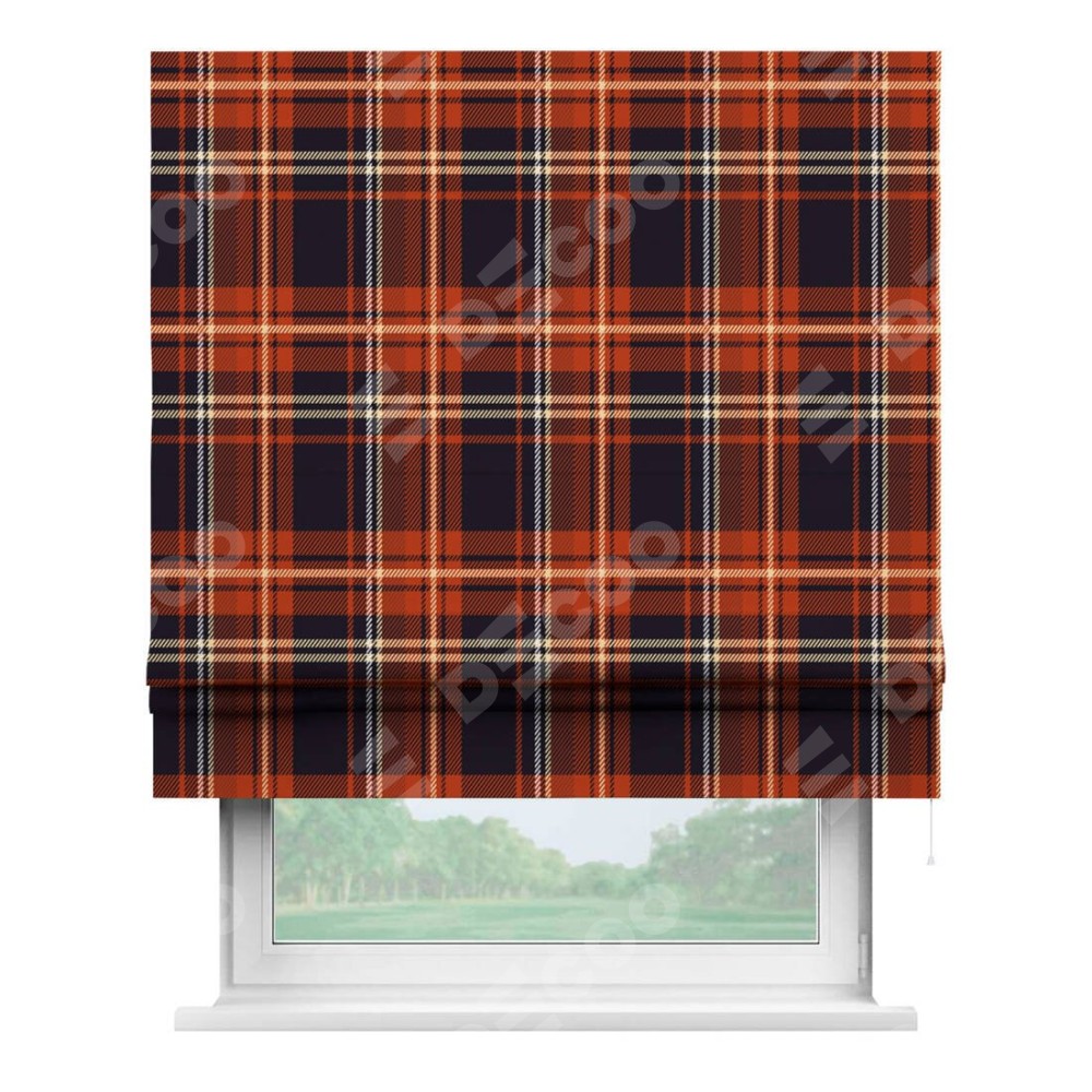 Римская штора «Кортин» для проема «Сине-оранжевая клетка»