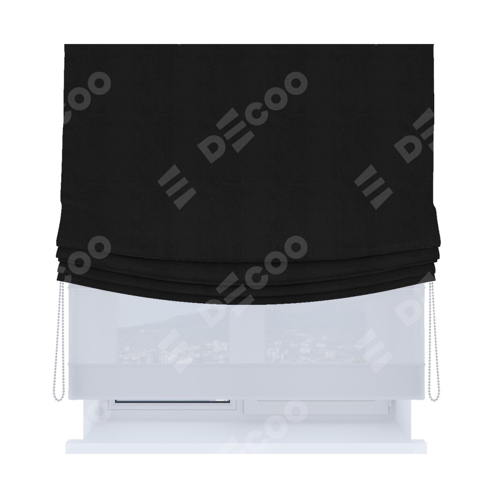 Римская штора день-ночь производителя «Cortin», используется для проёма, пошита из двух полотен, с лицевой стороны блэкаут однотонный черный артикул 79904, вторая ткань тюль (по стандарту комплектуется тюль белого цвета артикул V-01). Имеет универсальный механизм и подходит для монтажа: на потолок, на стену и в нишу. Удобное управление каждой шторой отдельно.