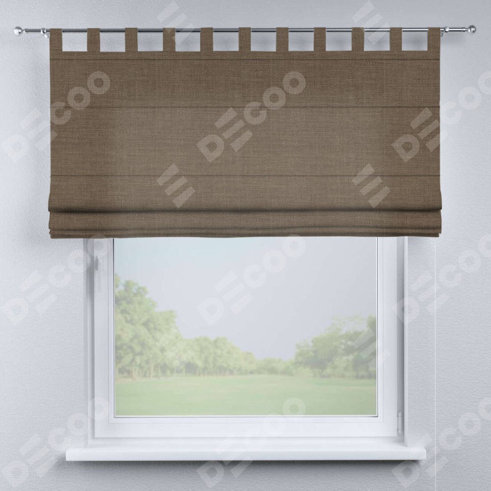 Римская штора производителя «Cortin», используется для проёма, пошита из ткани лён мокко, артикул ткани 7444. Данная модель пошита на петлях, комплектуется на выбор круглым карнизом и подходит для монтажа на стену. Римская штора на петлях имеет простую систему регулировки высоты, отличительным преимуществом данной модели является простой способ монтажа. Достаточно повесить ее на трубу и штора готова!