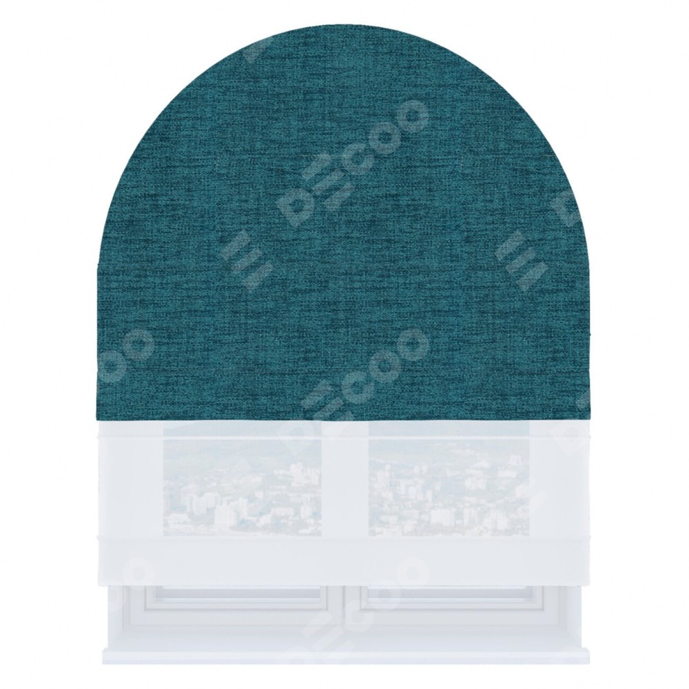 Римская штора день-ночь производителя «Cortin», используется для арочного проёма, пошита из двух полотен, с лицевой стороны рогожка димаут синий артикул 80422, вторая ткань тюль (по стандарту комплектуется тюль белого цвета артикул V-01). Штора шьётся по индивидуальным размерам, для данного типа римской шторы возможная ширина от 60 до 300 см. Удобное управление каждой шторой отдельно.